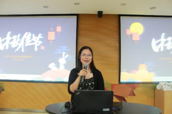 韩晓冬老师也向同学们表达了她的祝愿。在新冠疫情的背景下,依然选择学医的大家,值得我们倾佩。而中秋慰问作为医学院的一项传统活动,旨在让首次离家的新生尽快适应大学生活,在异乡感受到家的温暖。她祝愿所有的20级新生都可以在南大医这个独特而优秀的地方生活得充实而快乐。