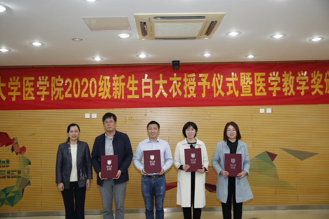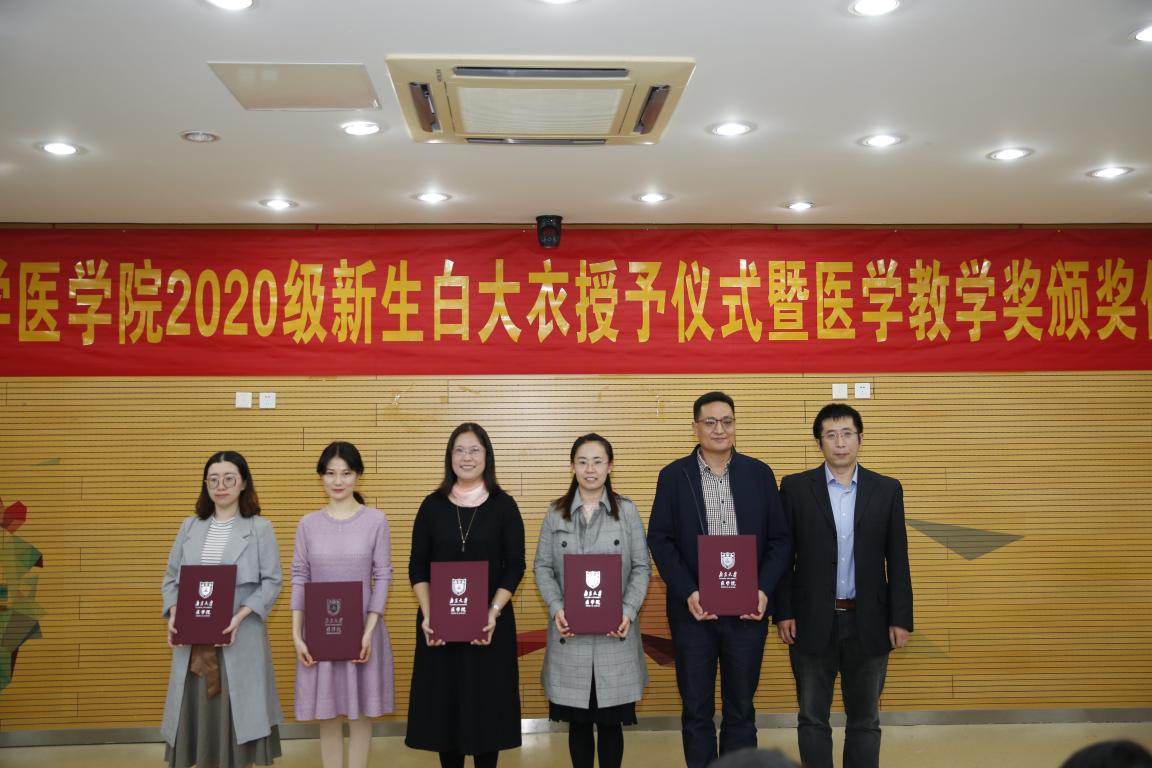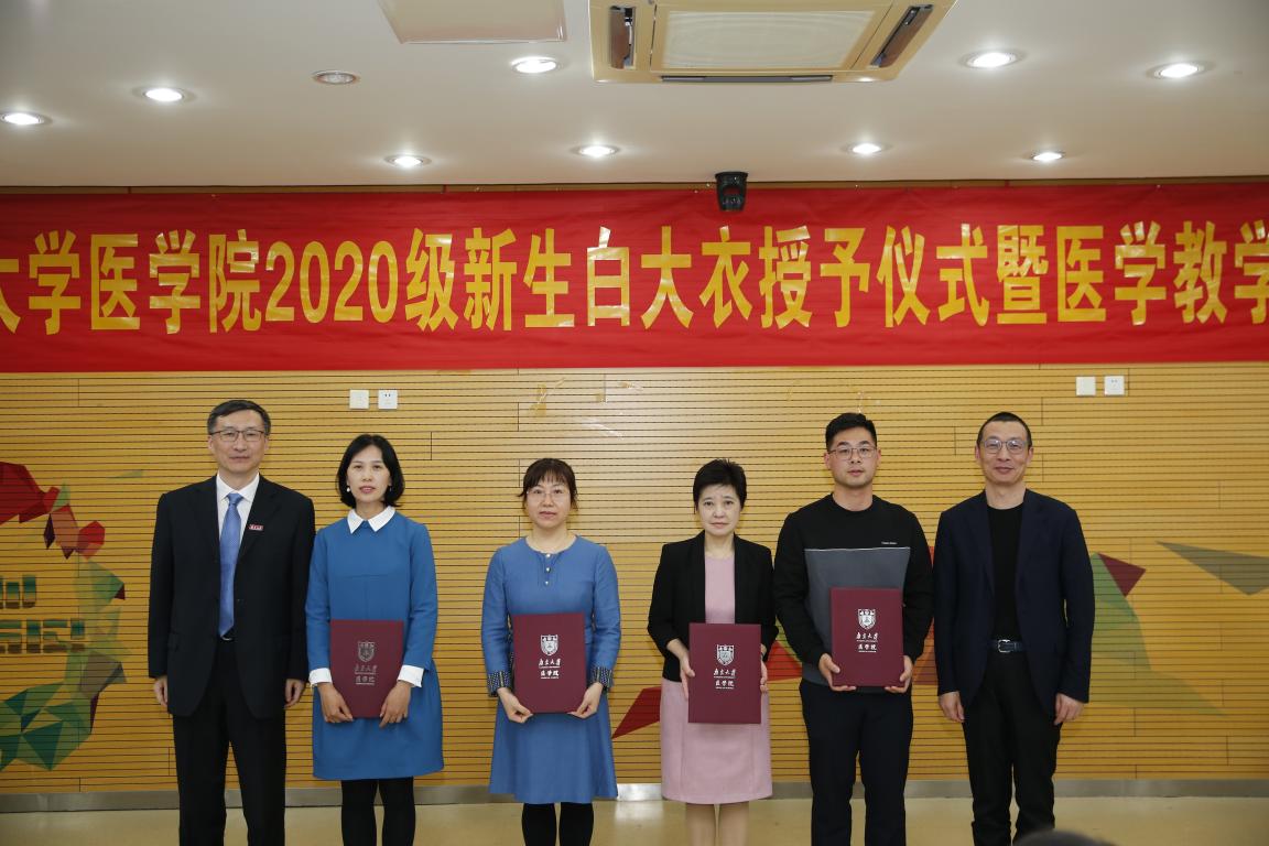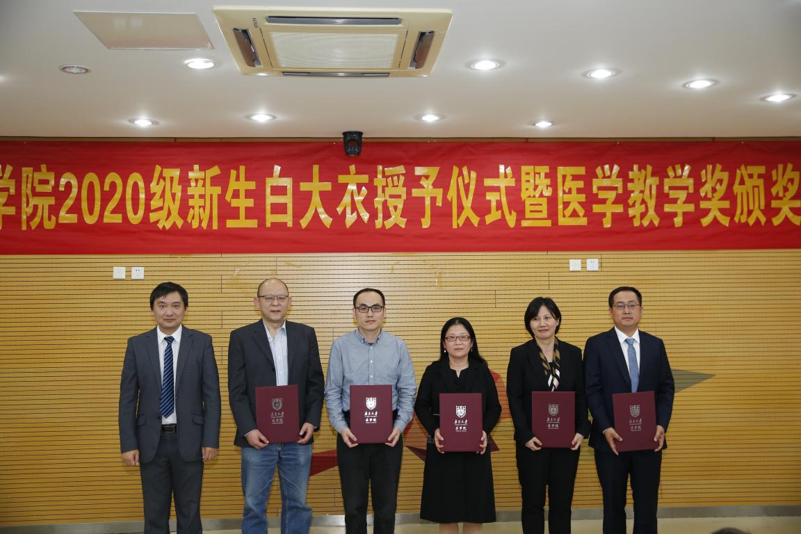 2020年10月24日下午,南京大学医学院2020级新生白大衣授予仪式暨教学奖颁奖仪式于仙林校区基础医学教学中心顺利举行。南京大学副校长、本科生院院长王志林,南京大学副校长、医学院院长张峻峰,附属口腔医院院长杨旭东,附属鼓楼医院副院长孙倍成,附属金陵医院(解放军东部战区总医院)党委常委、护理部主任朱冬梅,附属盐城第一医院党委书记查文章,附属苏北人民医院院长束余声,附属泰康仙林鼓楼医院副院长陈锦飞,南京市第二医院副院长殷国平,南京脑科医院副院长张丽,南京大学新生院安邦书院学生事务中心主任吴可,医学院校友代表、98级校友陈罡,医学院副院长蒋青、沈苏南、王宏伟、王婷婷,党委副书记王阿妮以及附属医院和教学医院分管教学的领导和老师出席活动。医学院党委书记韩晓冬主持仪式。