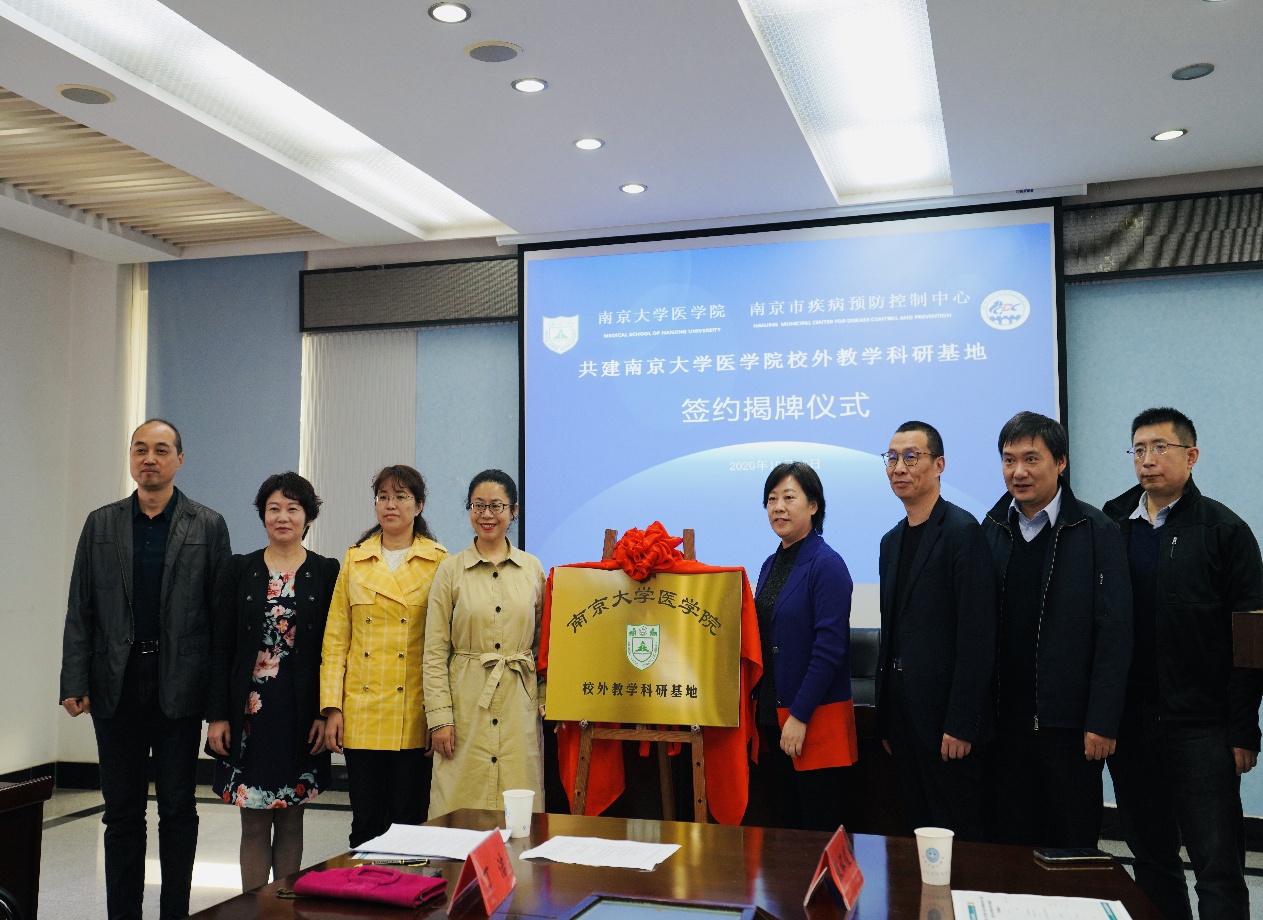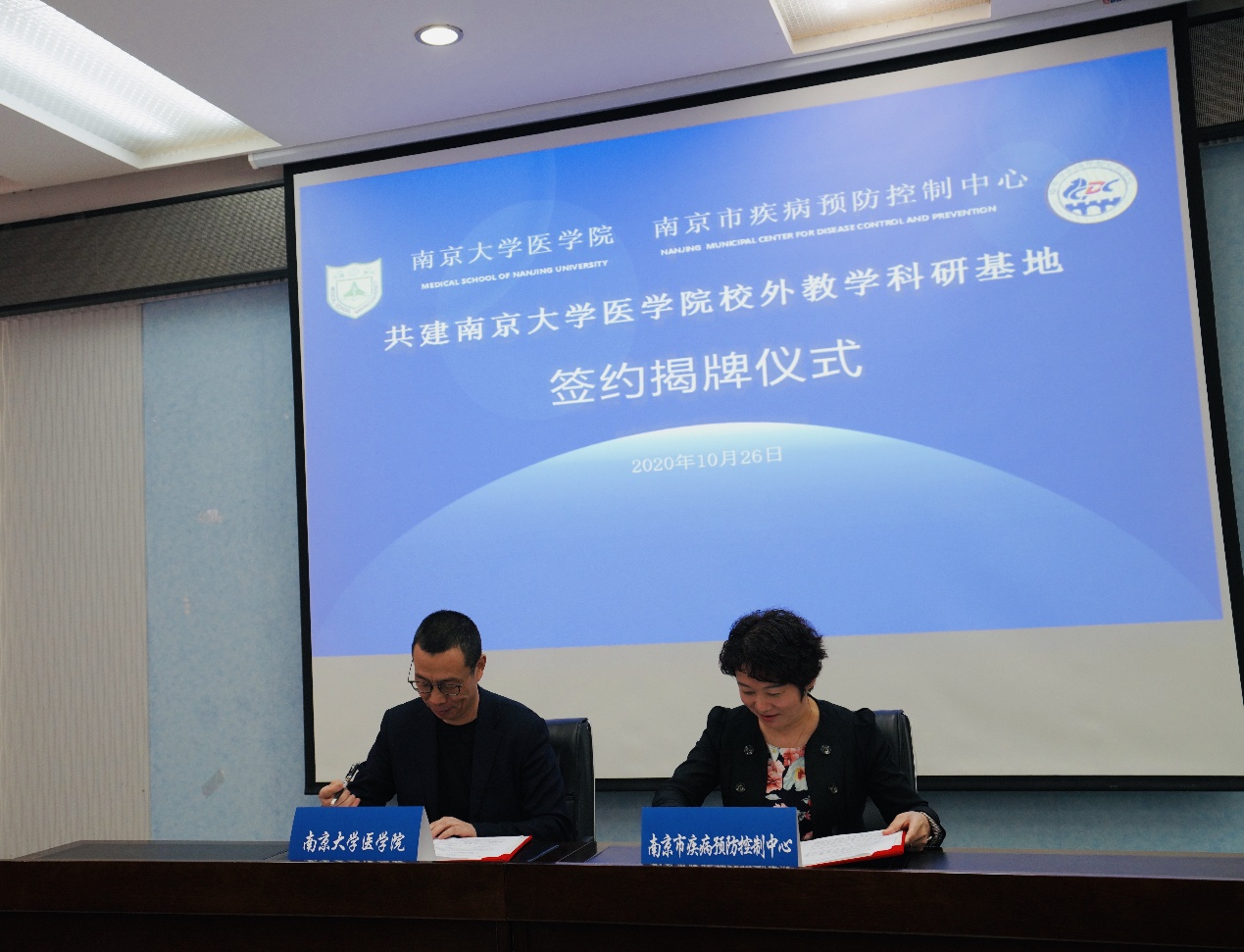 最后,南京大学医学院副院长蒋青与南京市疾病预防控制中心主任周楠分别代表南京大学医学院及南京市疾病预防控制中心签署《南京大学医学院-南京市疾病预防控制中心共建协议》,与会嘉宾共同为“南京大学医学院校外教学科研基地”揭牌。