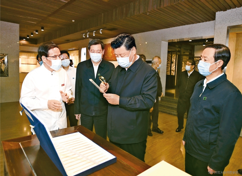 2020年9月16日至18日,中共中央总书记、国家主席、中央军委主席习近平在湖南考察。这是17日下午,习近平在湖南大学岳麓书院考察调研,了解人才培养、文化传承等情况。 新华社记者 谢环驰/摄