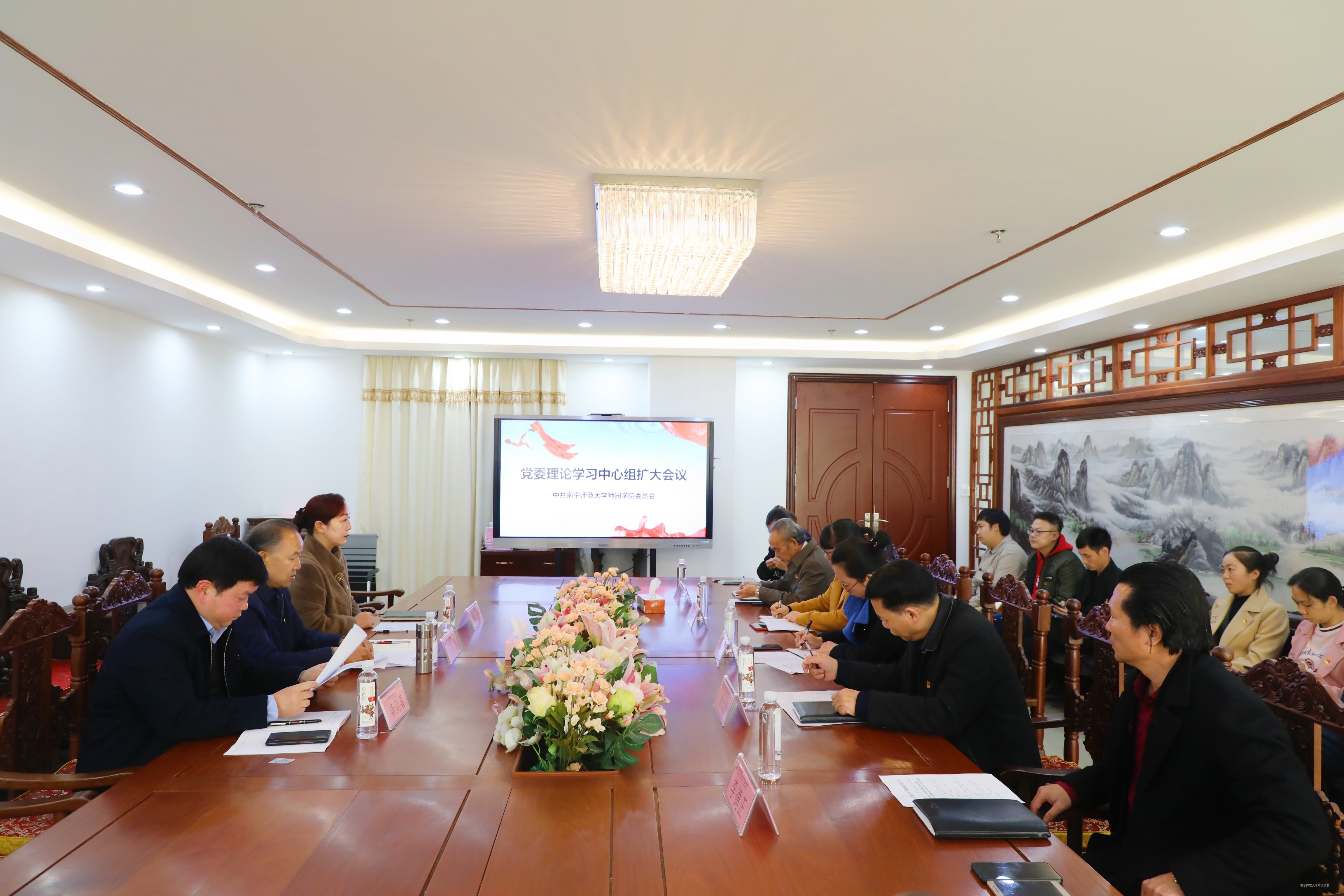 1月5日下午,我院在行政综合楼11楼1105会议室召开党委理论学习中心组扩大会,专题学习贯彻党的十九届六中全会精神。