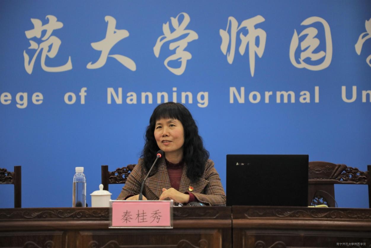 12月9日下午,我院在行政综合楼12楼第二报告厅开展学习贯彻党的十九届六中全会精神专题宣讲活动。自治区党委教育工委特聘专家教授、广西医科大学马克思主义学院院长秦桂秀应邀主讲。学院院长李珏,副院长庞俊、李德正、谢永新,教学总督导卢敏秋,中层领导干部及各党总支书记,各党支部书记,党员师生代表参加宣讲活动。活动由梁春贤书记主持。