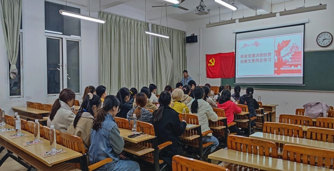 为号召广大党员干部和青年同志以黄文秀同志为榜样,不忘初心、牢记使命,勇于担当、甘于奉献,同时进一步推动我院外语系学生党支部与艺术系学生党支部的发展与建设,12月24日,外语系学生党支部联合艺术系学生党支部在教学楼4-403开展“紧抓党建,决胜扶贫,向黄文秀同志学习”主题党日活动。外语系及艺术系全体学生党员参加了此次主题党日活动。