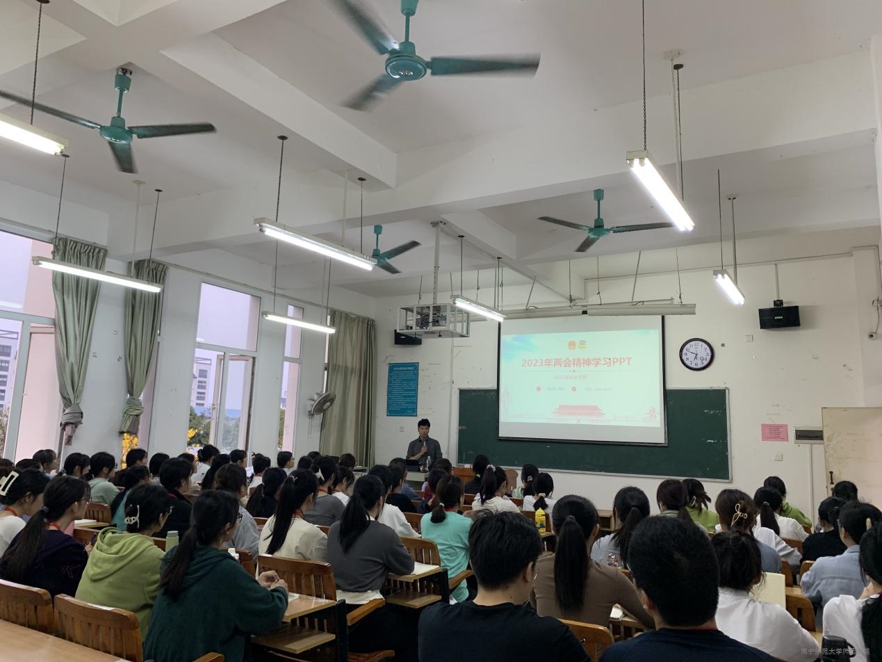 为进一步凸显基层党组织战斗堡垒作用和党员先锋模范作用,引导广大学生党员自觉肩负起党赋予的责任和使命,3月20日晚,经管系学生党支部在教学楼4栋204教室召开两会精神专题学习会。经管系学生党支部全体在校党员、党建助理参加学习会,学习会特邀思政部专任教师黄辉作领学。