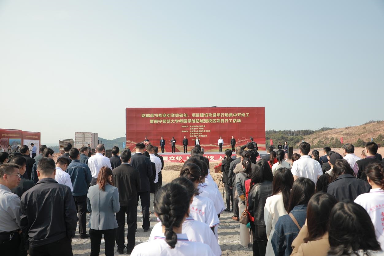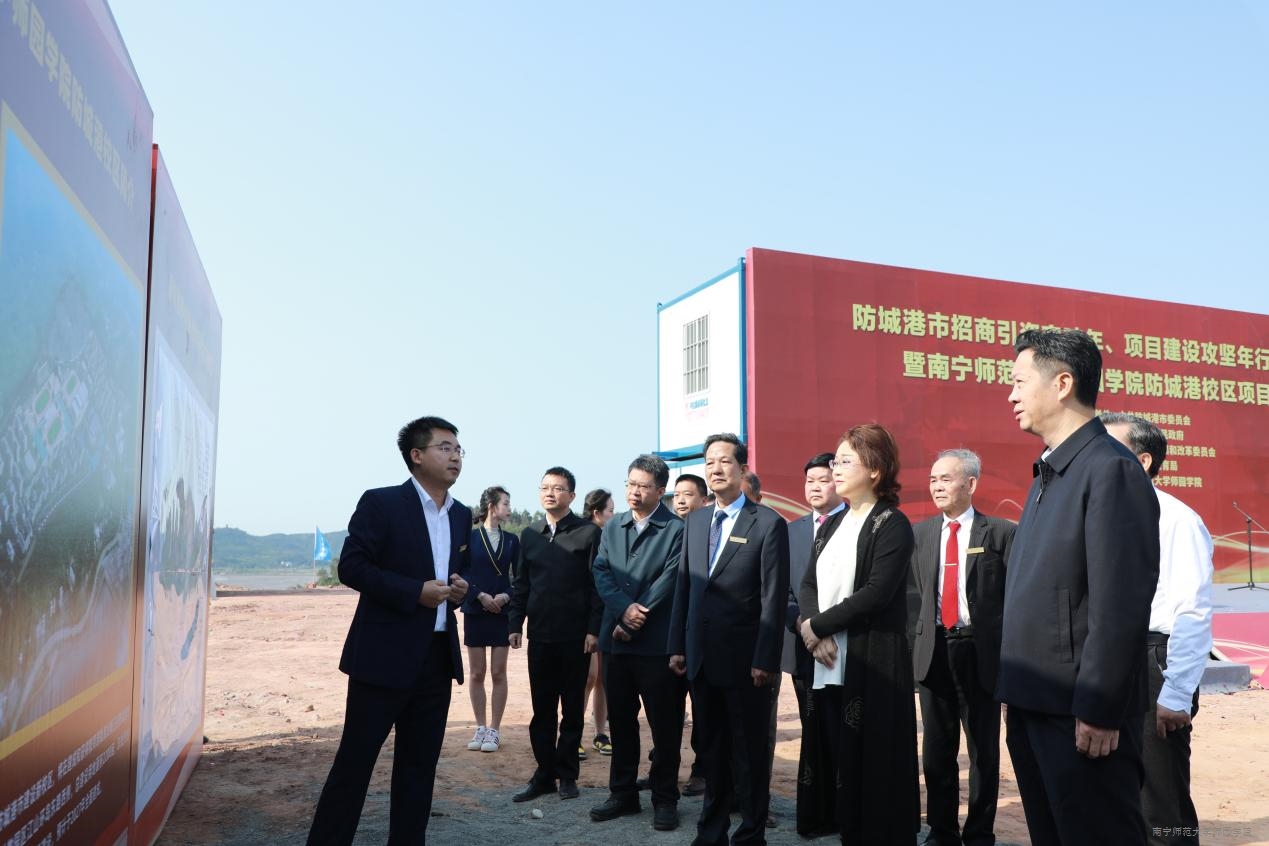 防城港市主要领导还认真听取了学院副院长、防城港校区项目指挥部常务副指挥长申书飞对86体育直播防城港校区项目的介绍。对学院投入41.5亿元,以高标准、高质量、高效率建设可容纳22000名学生的现代化校区,力争2024年9月实现防城港校区第一批学生入驻,5年内全面完成校园建设,使师86体育直播成为一所国内知名、风格独特、环境优美的综合性大学的做法表示高度认同,对学院将中华优秀传统文化与现代文明结合,传承发展民族地区特色表示高度赞赏。奠基仪式后,黄江市长召集并主持了防城港市相关部门与我院董事会、党政领导班子的会商会议,统筹解决我院防城港校区建设的难点问题,为我院下一阶段开展大规模建设奠定了基础。