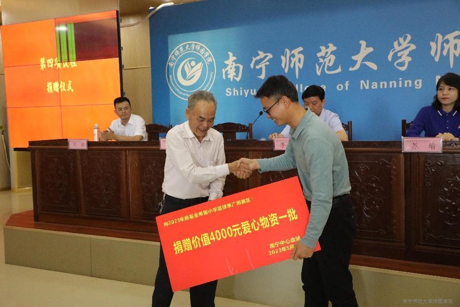 南宁中心血站献血办向2023年姚基金希望小学篮球季广西赛区志愿者捐赠爱心物资