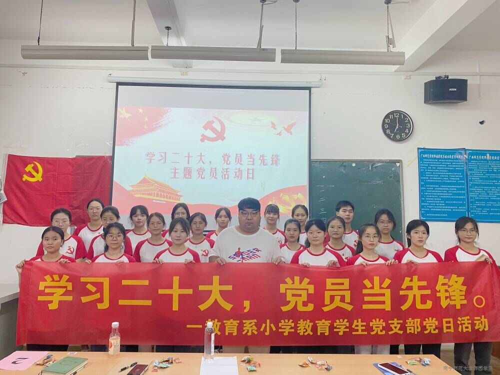 为扎实推进党支部标准化、规范化建设,增强基层党组织的创造力、凝聚力和战斗力,10月15日晚,教育系小学教育学生党支部在教学楼3-102教室举办了“学习二十大,党员当先锋”主题党日活动。教育系教师党员郭勇朝与教育系小学教育学生党支部全体党员同志参加会议。