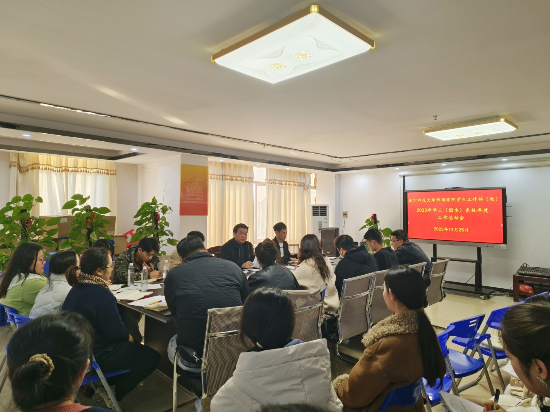 为全面总结2023年学生工作,落实立德树人根本任务,切实加强学生工作队伍规范化、制度化建设,总结学生工作特色、凝练学生工作品牌,推动学生思想政治教育工作高质量发展,12月25日下午,2023年学工(团委)系统年度工作总结会在行政楼2楼202会议室顺利召开。学院党委副书记、常务副院长李剑喜出席会议并作重要讲话,学工(团委)系统全体人员参加会议。会议由学工处处长叶栋主持。