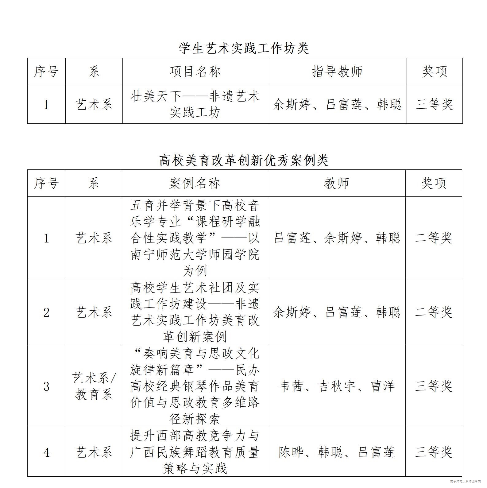 近日,广西第七届大学生艺术展演活动获奖结果揭晓,我院师生在此次活动中共斩获36项大奖,其中包括一等奖7项,二等奖14项,三等奖14项,以及广西第七届大学生艺术展演活动优秀组织奖。