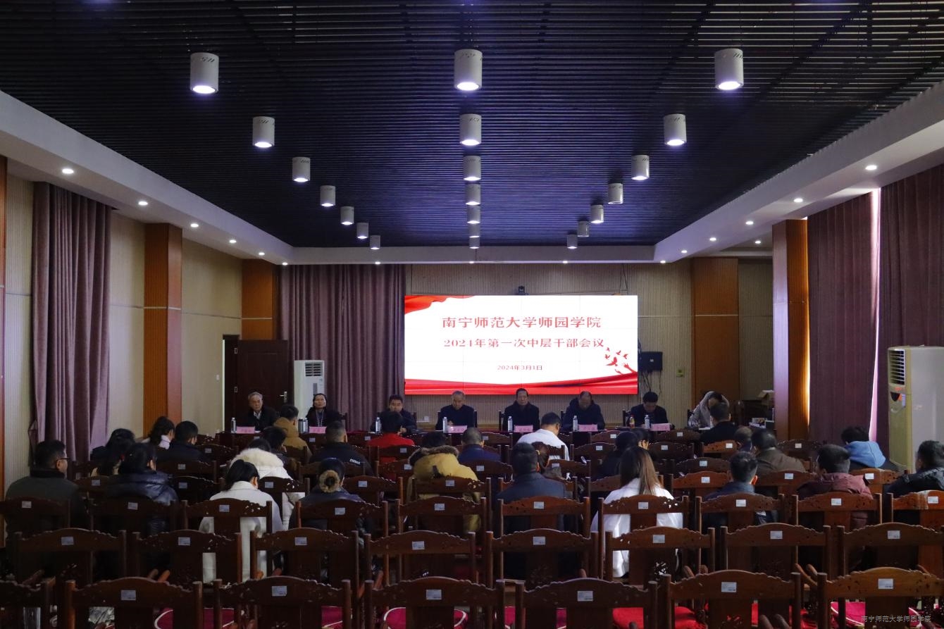 3月1日下午,学院在行政综合楼12楼第三报告厅召开2024年第一次中层干部会议,研究部署2024年春季学期重点工作,动员和激励全院干部、师生员工以斗志昂扬的工作热情和积极向上的工作心态迎接2024年新挑战、新任务。学院董事长梁仲荣,院长尹文嘉,党委书记梁春贤,党委副书记、常务副院长李剑喜,副院长申书飞、庞俊、李德正,教学总督导卢敏秋出席会议,全体中层干部参加会议。会议由庞俊副院长主持。