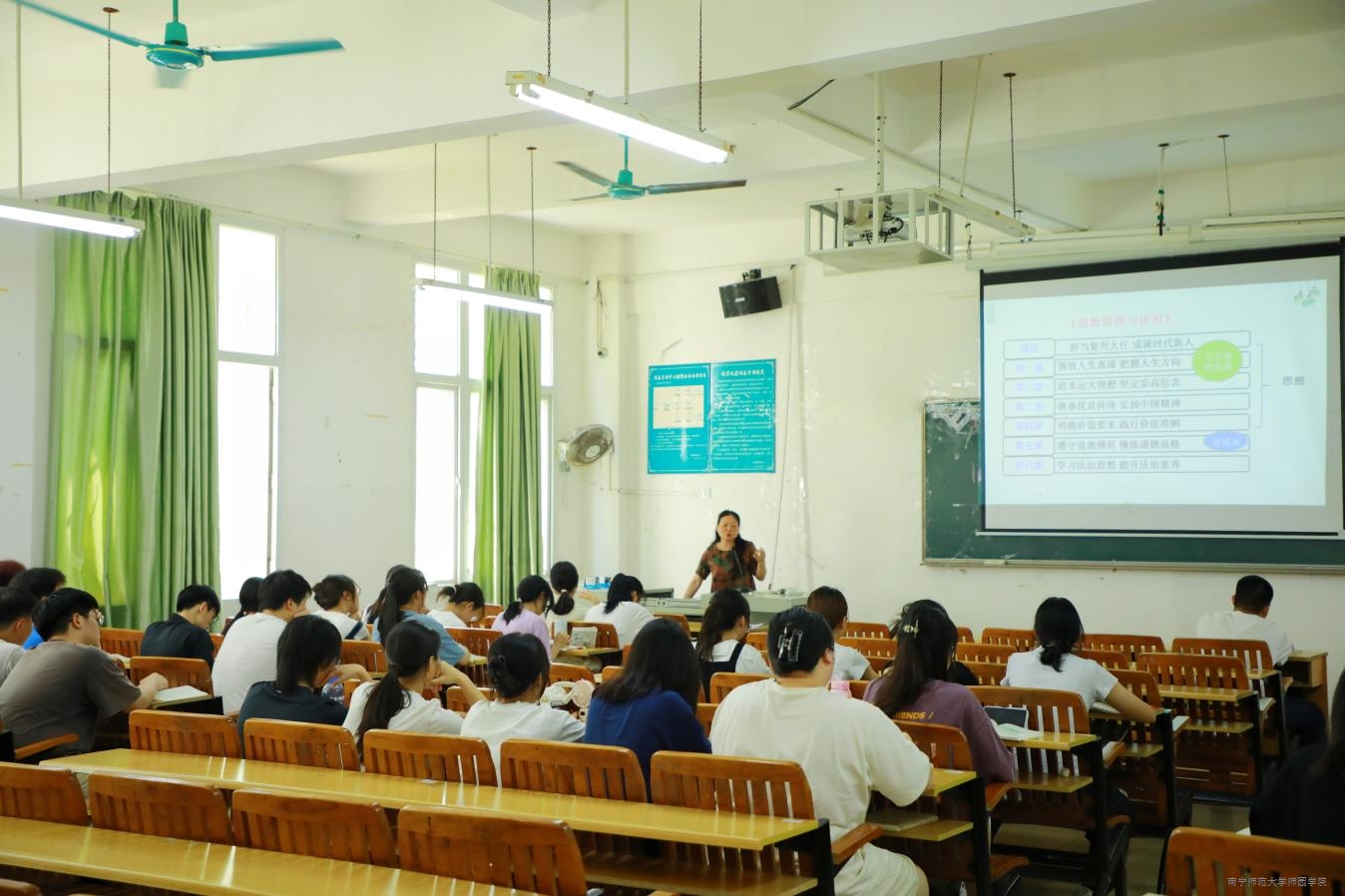 为加强教学研讨和交流,4月16日下午,思政部在3-101教室开展《思想道德与法治》教学观摩课。学院教学总督导卢敏秋与思政部主任凌锐、教师代表参与听课、评课活动。
