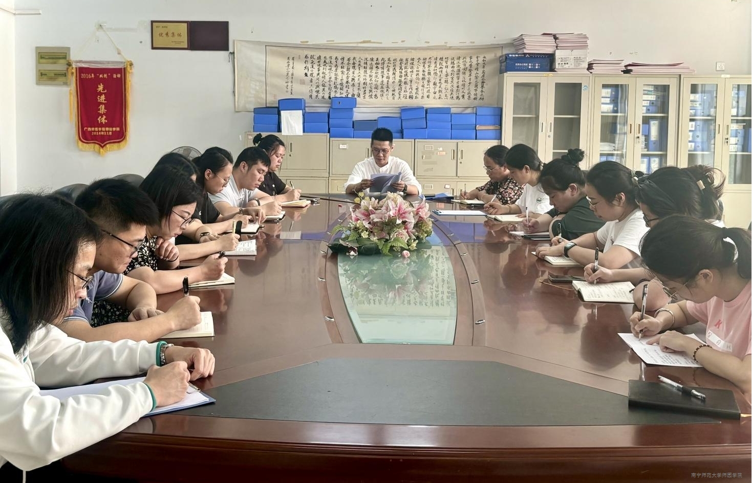 会上,卢洋处长组织全体参会人员深刻学习习近平总书记关于“四有”好老师、“四个引路人”“四个相统一”“经师”和“人师”统一的“大先生”等重要批示精神,并对《新时代高校教师职业行为十项准则》《广西高校教师职业道德负面清单和失范行为处理意见》《自治区教育厅等七部门关于进一步加强和改进新时代师德师风建设的实施意见》等重要文件进行解读。卢洋处长指出,教务处是学院的教学管理部门,处室全体人员要坚持正确的政治方向。坚持以习近平新时代中国特色社会主义思想为指导,拥护中国共产党的领导,全面贯彻党的教育方针,积极履行师德师风建设责任,规范自身言行,坚守原则底线,以高校教师职业道德规范为标准,以师德师风负面清单为戒线,做好教育教学各项管理和服务工作。