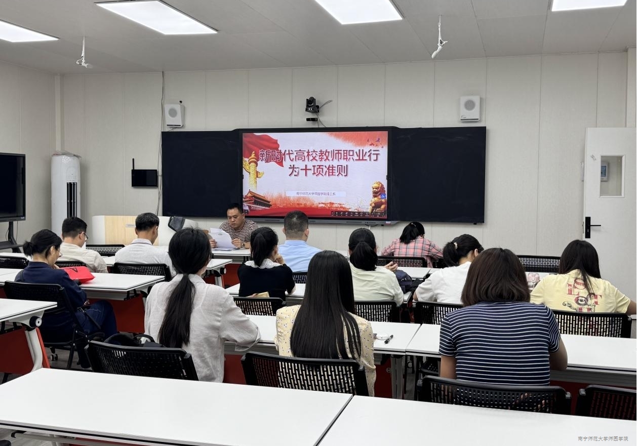 随后,全体与会人员就《新时代高校教师职业行为十项准则》《广西高校教师职业道德负面清单和师范行为处理》《86体育直播师德考核办法》等重要文件进行深入学习,并通过视频形式学习全国全区师德模范人物先进事迹,深刻学习领会师德师风建设的重要性,努力做一位具备高尚师德的教师,为学生传道授业解惑,引导学生树立正确的世界观、人生观和价值观。