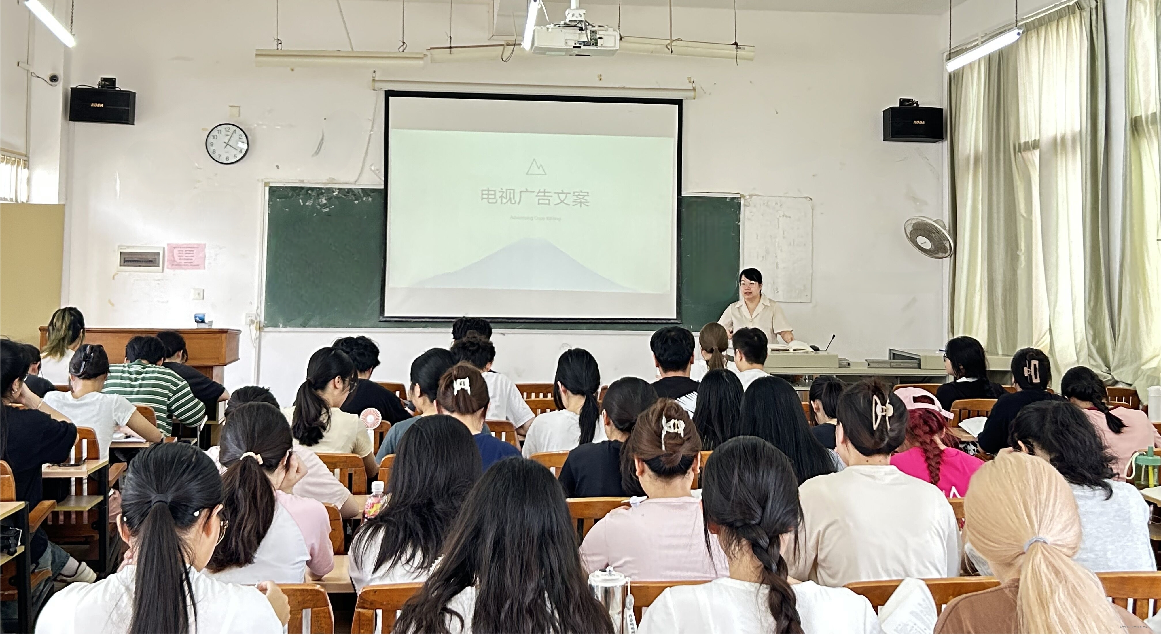 4月25日下午,中文系在教学楼3-407教室开展《广告文案》课程思政教学公开课。此次公开课由中文系潘洛讲师主讲,中文系主任骆柳毅、部分教师代表参加听课、评课。