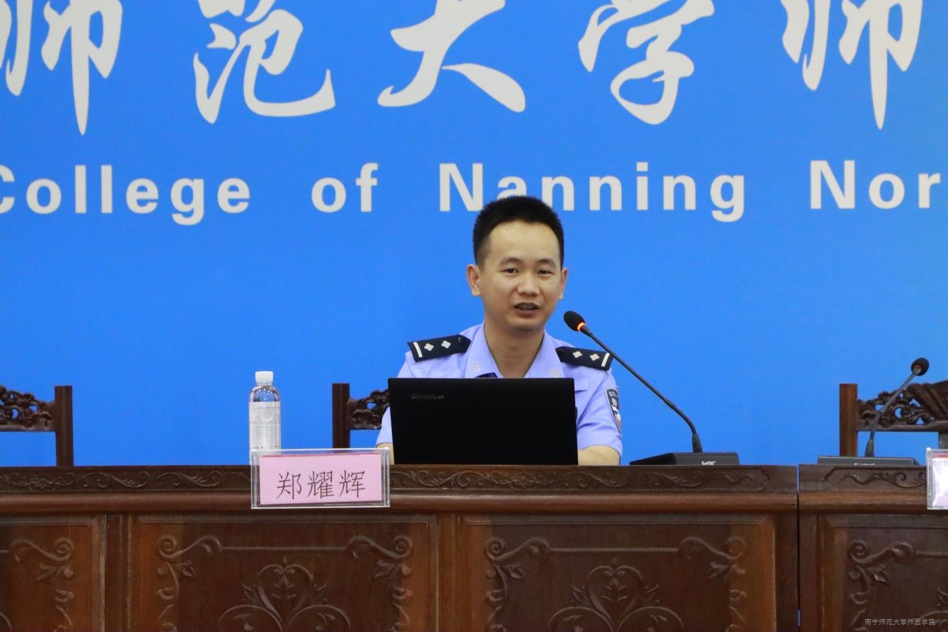 为教育引导学院师生增强交通安全意识,严格遵守教育法律法规,自觉守护个人生命财产安全,5月10日下午,我院在行政综合楼12楼第二报告厅开展交通安全教育专题讲座。南宁市吴圩镇交警中队政治指导员郑耀辉警官应邀主讲,学院保卫处处长苏琳、学工处处长叶栋与全院各班级班干部、辅导员共200余人聆听讲座。讲座由叶栋处长主持。