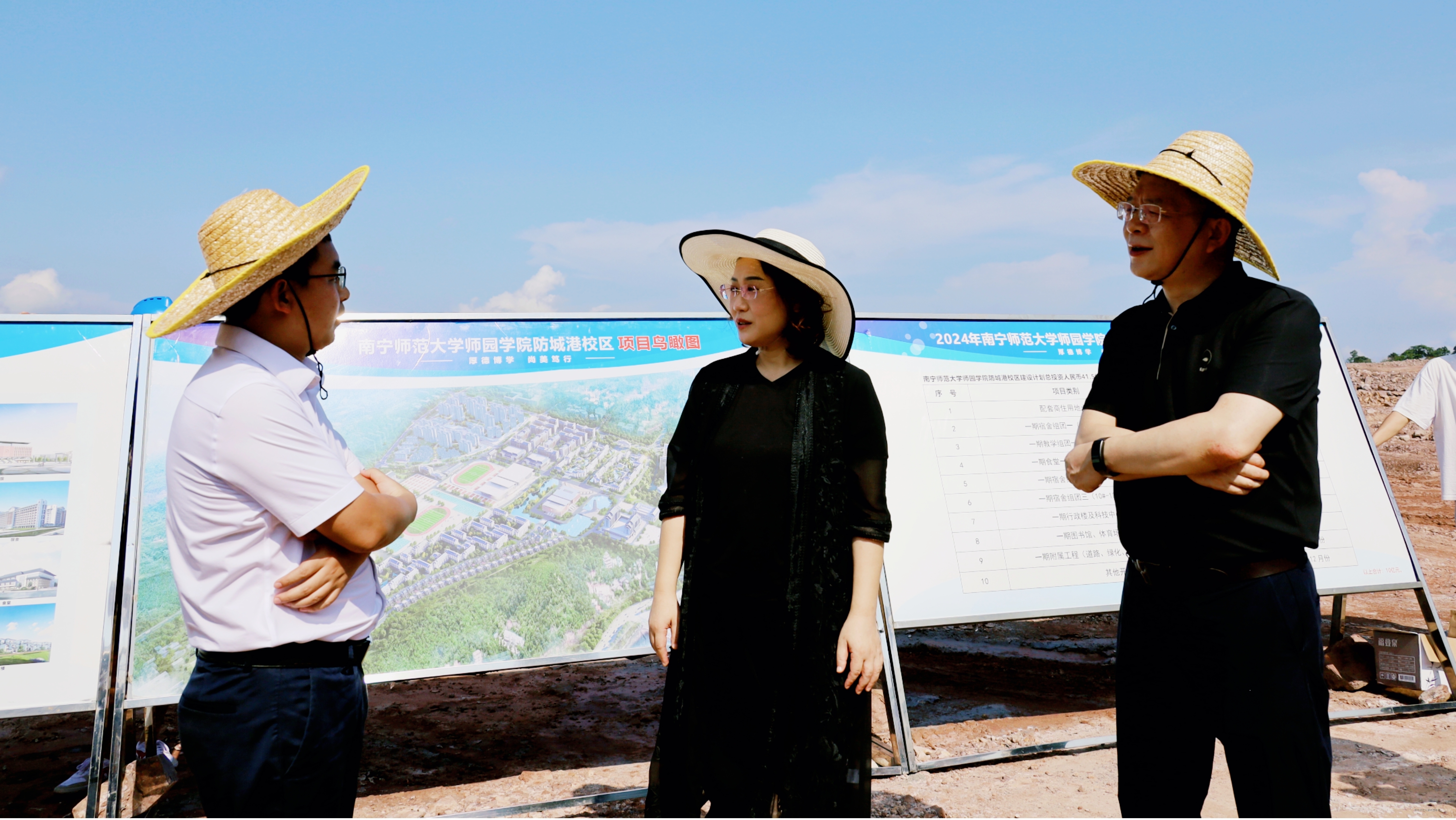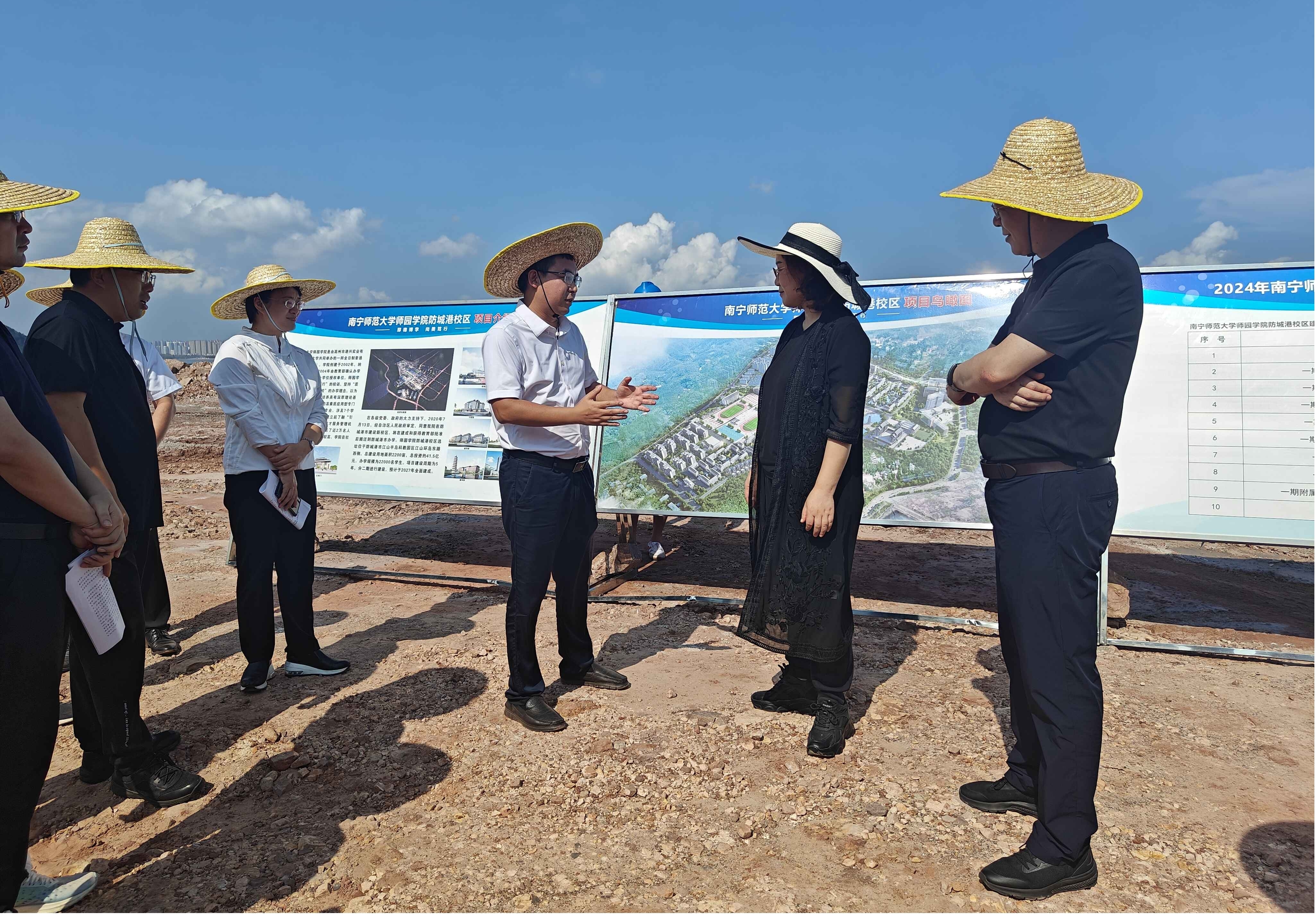 6月2日下午,防城港市市长黄江一行到我院防城港校区项目施工现场调研重大项目建设情况,强调要深入贯彻落实习近平总书记关于建设教育强国的重要论述和对广西重大方略要求,办好人民满意教育,坚持高标准建设、高效率推进,建设一所高品质、高颜值、高水平的大学。