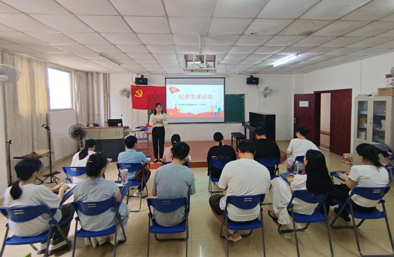 为持续深入推进党纪学习教育,强化政治纪律和政治规矩,加强作风纪律建设,6月12日下午,艺术系党总支在15栋101教室召开党纪学习教育专题党课。本次党课由艺术系党总支书记吕富莲主讲,艺术系全体教工党员、学生党员参与学习。