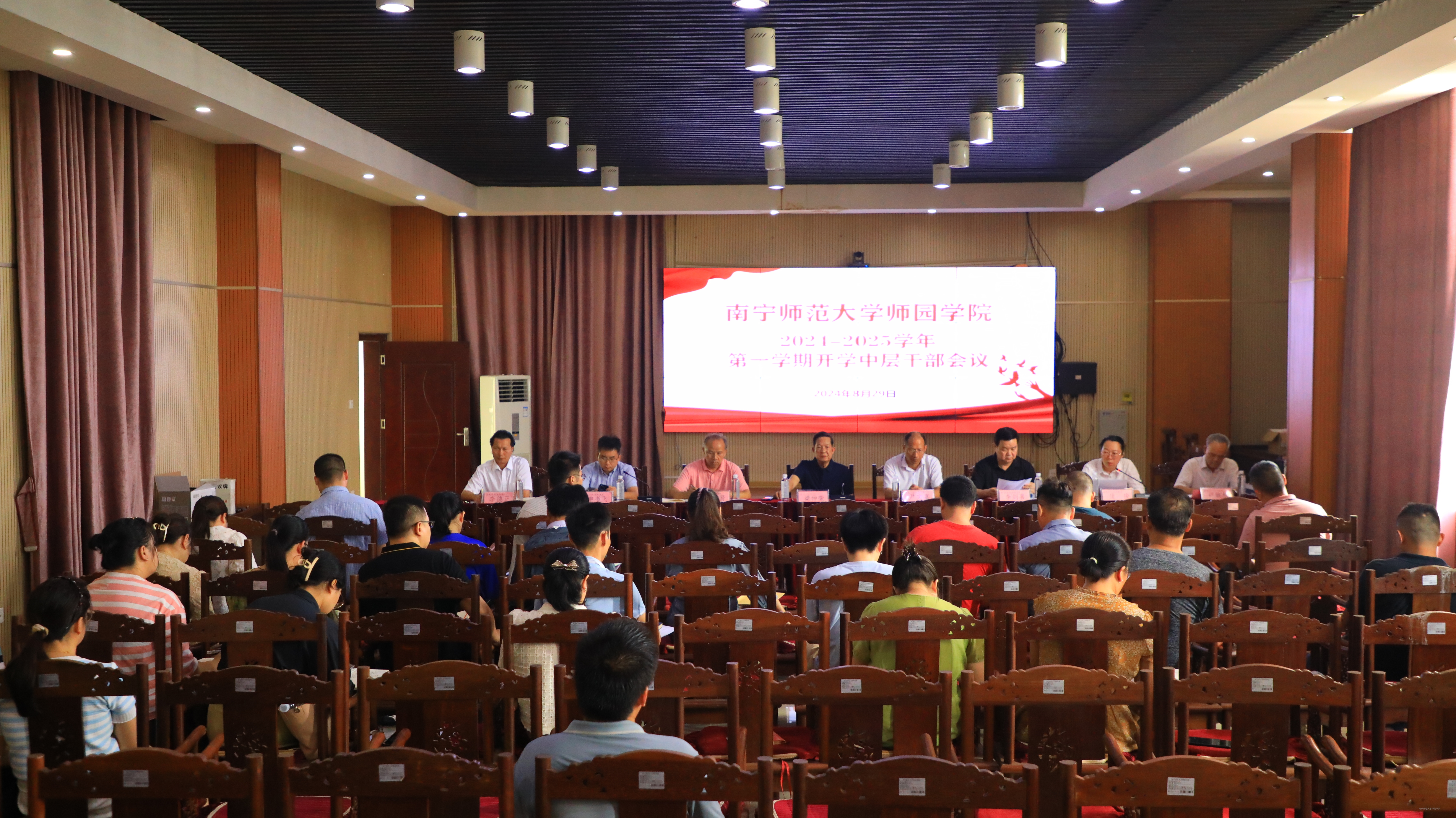 8月29日上午,学院在行政综合楼12楼第三报告厅召开2024-2025学年(第一学期)开学中层干部会议,总结暑期工作,部署2024级新生接待工作与新学期重点工作,勉励动员全体师生聚焦学院发展的方向和目标,踔厉奋发再创佳绩。学院董事长梁仲荣,院长尹文嘉,党委书记梁春贤,党委副书记、常务副院长李剑喜,副院长申书飞、庞俊、李德正,教学总督导卢敏秋出席会议。全体中层干部、各党总支书记参加会议。会议由庞俊副院长主持。