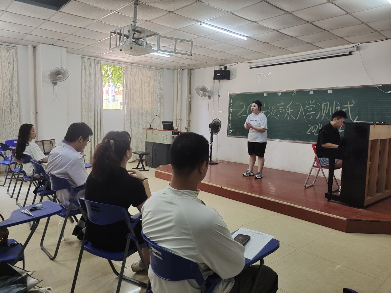 为充分了解2024级新生专业素质,更好地进行因材施教,9月4日至5日,艺术系组织2024级音乐学专业全体学生开展声乐、钢琴入学测试。艺术系主任韩聪与音乐学教研室骨干教师担任评委。