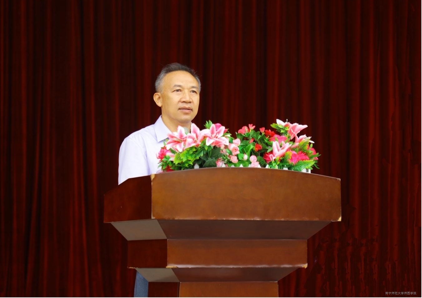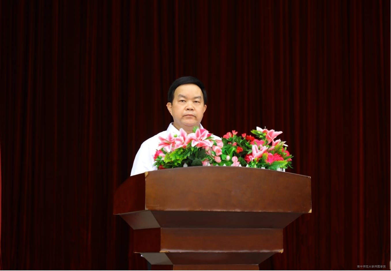 梁春贤书记在大会上作重要讲话。他表示军训作为大学首课,通过教官和老师指导,2024级新生们挑战淬炼意志,实现自我超越,提升了身体素质和意志品质,增强了国防观念、国家安全意识和忧患危机意识。同时,梁春贤书记强调,正值九一八事变纪念日,学院在升旗广场庄严举行2024级新生军训会操大会,希望学院全体师生能铭记历史、居安思危,以实际行动勇担使命担当、振兴中华。为鼓舞2024级新生在今后学习与生活中继续发扬意志坚定、作风优良的精神品质,梁春贤书记向全体2024级新生提出三点建议:一是在求学逐梦路上攻坚克难,树立起“强国有我”的坚强意志。希望2024级新生们持续发扬锲而不舍、坚韧不拔的精神,全身心投入学习与实践活动,逐步明确发展目标、提升个人专业能力、综合实力,为实现教育现代化强国建设作出更大贡献。二是紧跟新时代发展步伐,以创新赋能解决问题的能力。希望2024级新生们主动适应时代发展需求,学会接纳新事物,释放自身的创新潜能、激发创新内生动力,并坚持以学为本,不断完善知识体系、夯实基础、提升专业技能与解决问题的能力。三是正确认识个人成长与国家的需要,厚植爱国情怀。希望2024级新生自觉关心和维护国家安全,坚定社会主义信念,树立民族自豪感和自信心,自觉将小我融入祖国的大我,以激情昂扬的精神状态为实现中华民族伟大复兴贡献青春力量。