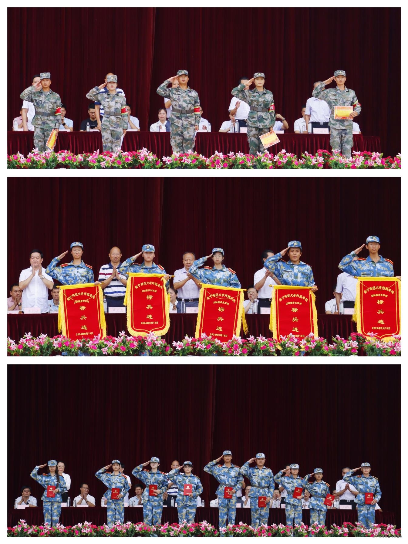 党委副书记、常务副院长李剑喜在大会上宣读《86体育直播关于表彰2024级新生军训“优秀教官”“标兵连”“优秀学员”的决定》,充分肯定了2024级新生军训成果并激励同学们在今后的学习生活中继续发扬艰苦奋斗、自强不息、团结协作的精神,不断追求卓越,勇攀人生高峰。学院领导为在军训中表现突出的集体和个人颁发奖项并合影留念。