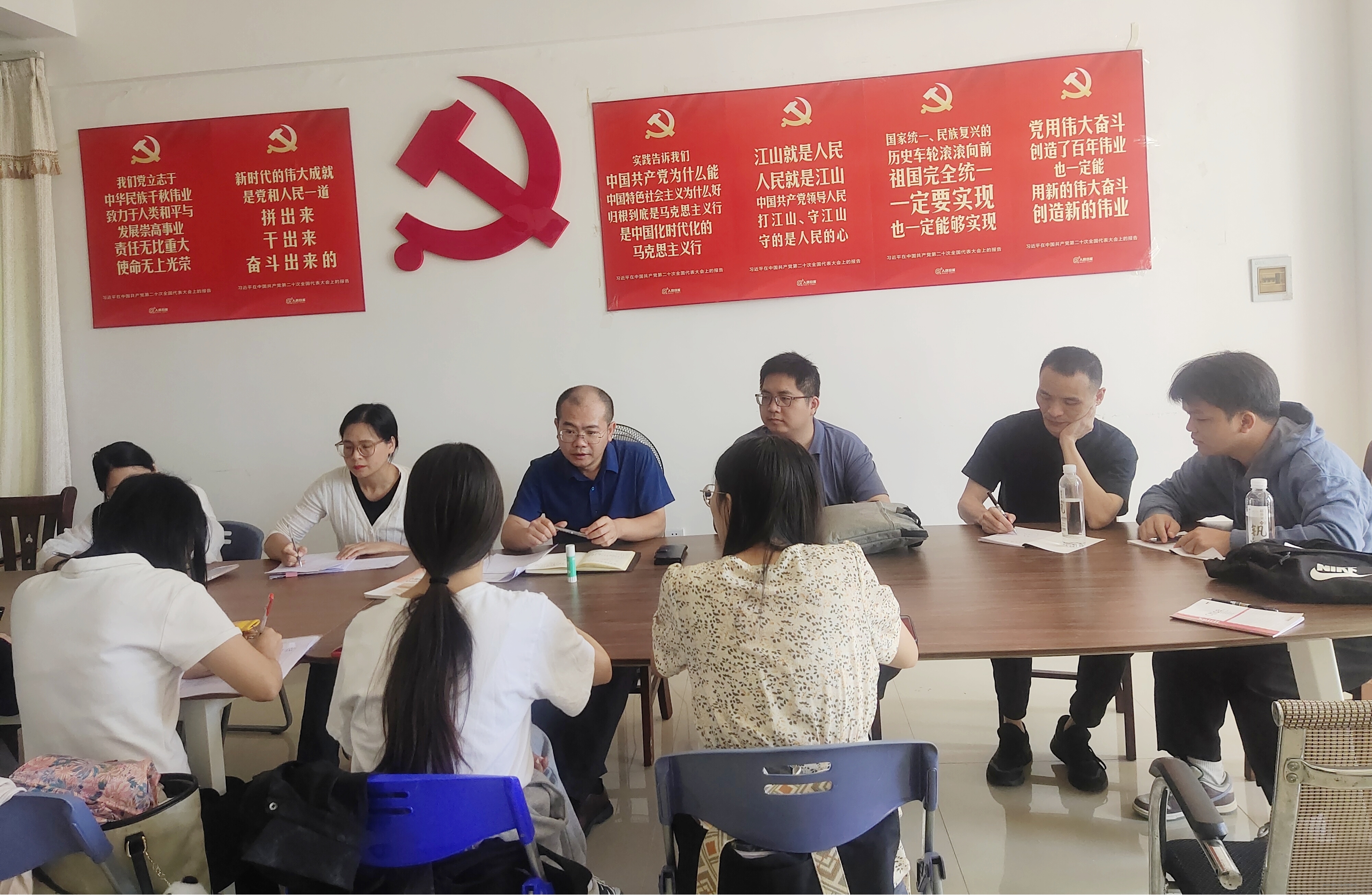 10月23日中午,思政教研部教工直属党支部在行政楼4楼402办公室召开“以伟大的教育家精神,铸造师德师风之魂”主题党课。此次党课由思政教研部教工直属党支部书记凌锐同志主讲,思政教研部教工直属党支部全体党员同志参加党课学习。