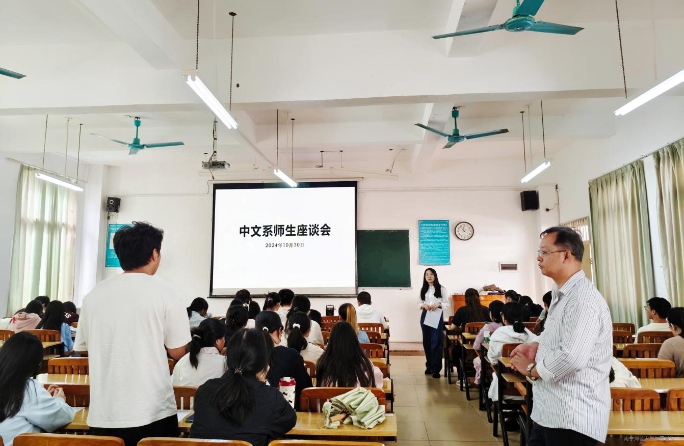 10月30日中午,中文系在教学楼3-302教室召开师生座谈会。中文系主任骆柳毅、汉语言文学教研室副主任黄曼婷及各班级学习委员、学生代表参与座谈。
