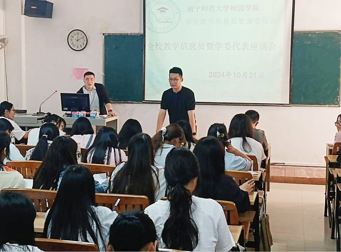 教务处处长卢洋在会上详细介绍了学院的学科建设成效以及学生教育教学管理相关的规定,希望同学们遵守校纪校规,做好学习规划、明晰阶段任务,夯实自身专业理论知识与专业技能。教务处考务科副科长周子嵘向与会学生解读了面向各班学习委员开展的教学质量问卷的具体内容,并根据问卷调查的结果,分析了现阶段我院教学工作中的同学们普遍认可的优点与不足,鼓励同学们发挥模范带头作用,营造良好的学风、班风。