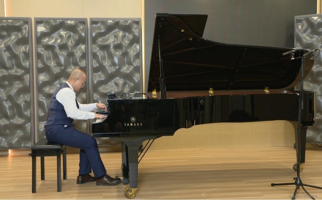 教师组二等奖获得者、教育系教师邝泓鸣弹奏钢琴