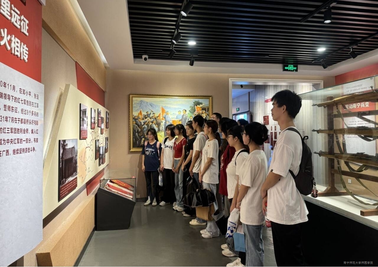 10月29日下午,党支部书记杨俊宇组织理工系学生党支部的学生党员赴位于南宁市南湖公园的李明瑞、韦拔群革命烈士陈列馆进行现场学习。党员同志们走进陈列馆,通过图片、文字和实物展示等方式,学习了解李明瑞、韦拔群烈士的生平事迹展览、人生轨迹,感受革命烈士的传奇人生与红色精神,增强党员同志的使命感和责任感。当天,参观学习结束后,理工系学生党支部的党员同志们还开展了知识问答活动,以问答、抢答的形式加强学习党纪知识、党的创新理论知识,坚持以学铸魂、以学增智、以学正风、以学促干。
