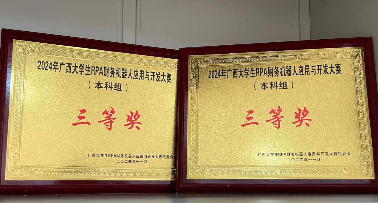 近日,广西大学生RPA财务机器人应用与开发大赛组委会公布了2024年广西大学生RPA财务机器人应用与开发大赛获奖结果,我院学子斩获三等奖2项。