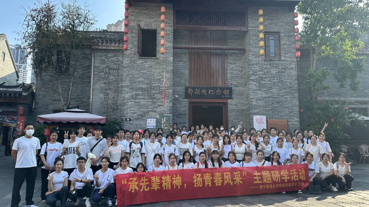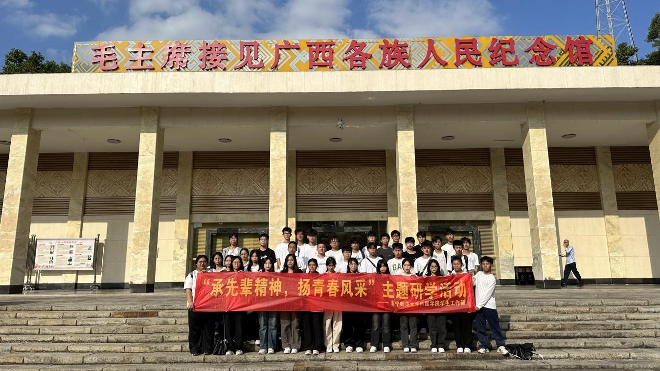 本次研学活动,由各系辅导员分批带领学生实地参观李明瑞、韦拔群纪念馆、邓颖超纪念馆及毛主席接见广西各族人民纪念馆等爱国主义教育基地,通过实地考察和现场学习,增强学习效果。在李明瑞、韦拔群纪念馆,同学们通过丰富的历史资料和场景再现深切体会到百色起义、龙州起义等革命历史事件的艰辛与伟大,坚定了为祖国的繁荣富强不懈奋斗的决心。在邓颖超纪念馆,同学们全面了解邓颖超同志一生的光辉历程,深受其坚定理想信念和无私奉献精神的感染,立志以她为楷模,勤奋学习,积极向上。在毛主席接见广西各族人民纪念馆,同学们通过珍贵照片和饱含深情的文物,深刻认识到无数先辈的英勇奋斗和无私奉献换来了今天的和平与繁荣,誓言铭记历史,珍惜幸福生活,为实现中华民族伟大复兴贡献力量。