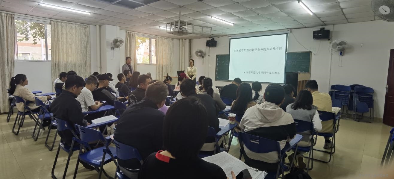 12月3日,艺术系在15-101教室召开青年教师教学业务能力提升培训会。艺术系全体教职工参加会议,会议由艺术系主任韩聪主持。