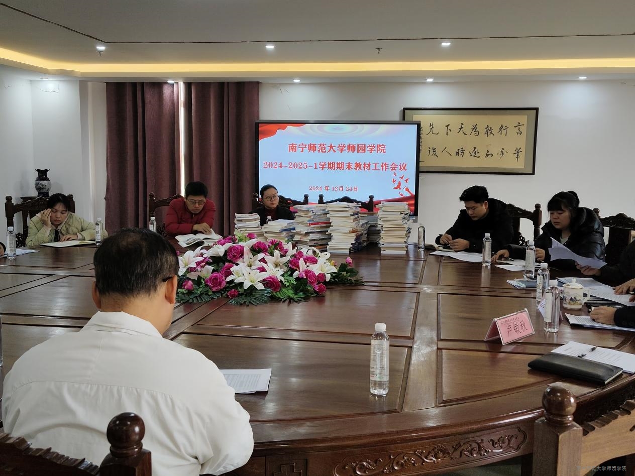 12月24日上午,我院在行政综合楼1002会议室召开2024-2025-1学期教材工作会议。学院副院长李德正,教学总督导卢敏秋及教材审查委员会全体成员、教务处相关工作人员参加会议。会议由教务处处长卢洋主持。