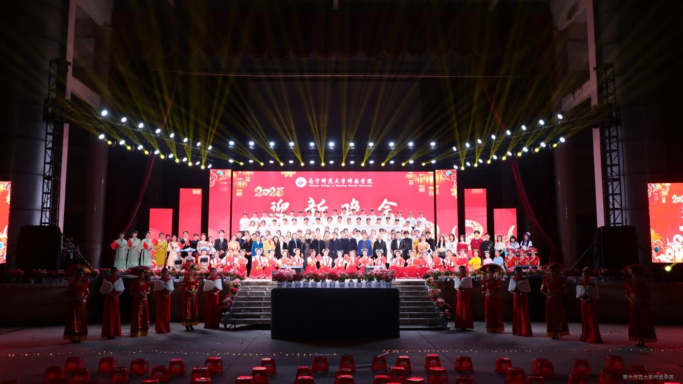 瑞气盈门迎新春,蛇舞翩翩送吉祥。我院“博学笃志迎新年,踔厉奋发永向前”2025年迎新晚会共有17个节目,分别围绕着“红色年代,薪火相传”“求同存异,和合共生”“民族团结,共谋发展”和“家国同心,破浪前行”四个主题展开表演。本次迎新晚会囊括了舞蹈,朗诵,歌唱,走秀,合唱等多种形式表演,优秀传统文化与现代文化的碰撞,为学院师生带来了美与激情的享受。晚会现场始终洋溢着阳光、喜庆、热烈的氛围,充分展现学院美育成效和师生积极向上的精神面貌。最后,晚会在全体观众共同合唱的歌曲《歌唱祖国》和绚丽多彩的烟火中完美落幕。