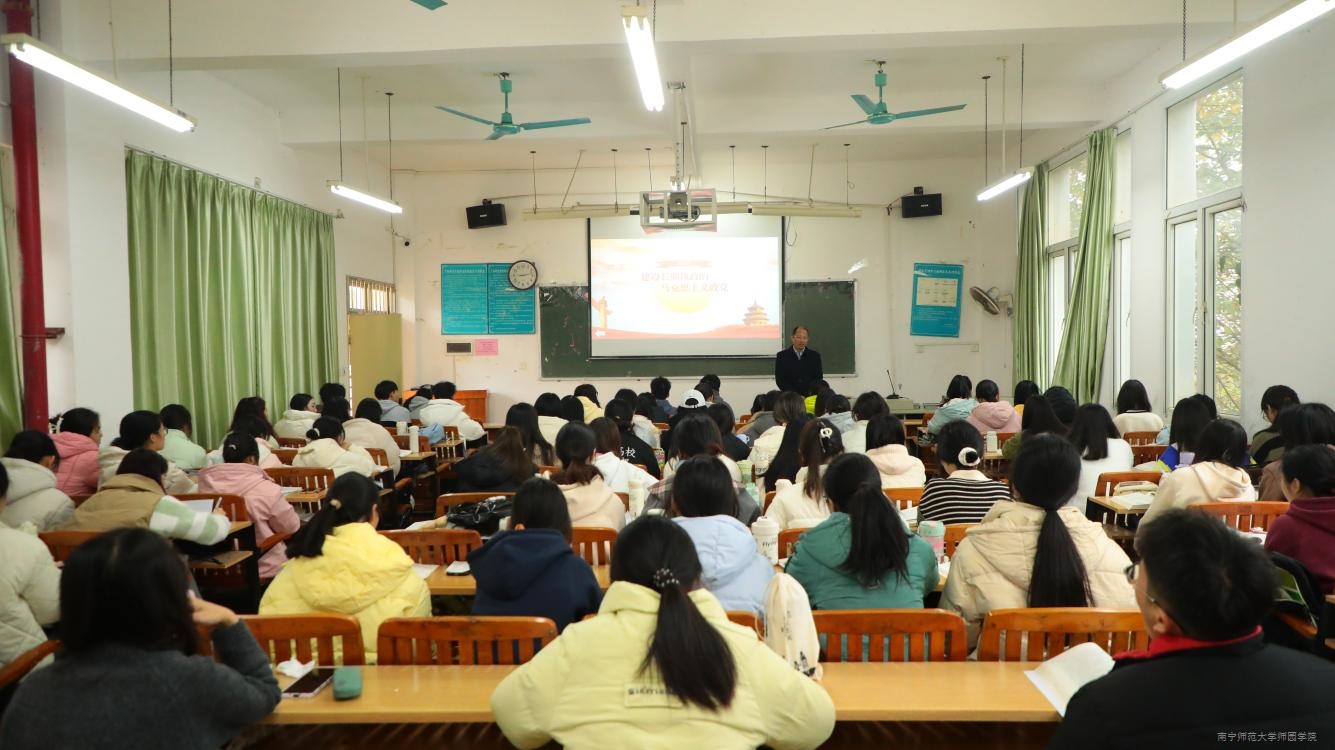 为进一步推动习近平新时代中国特色社会主义思想进课堂、进头脑,12月27日上午,学院院长尹文嘉教授走进教学楼3栋208教室为2023级英语专业学生讲授《习近平新时代中国特色社会主义思想概论》课程。