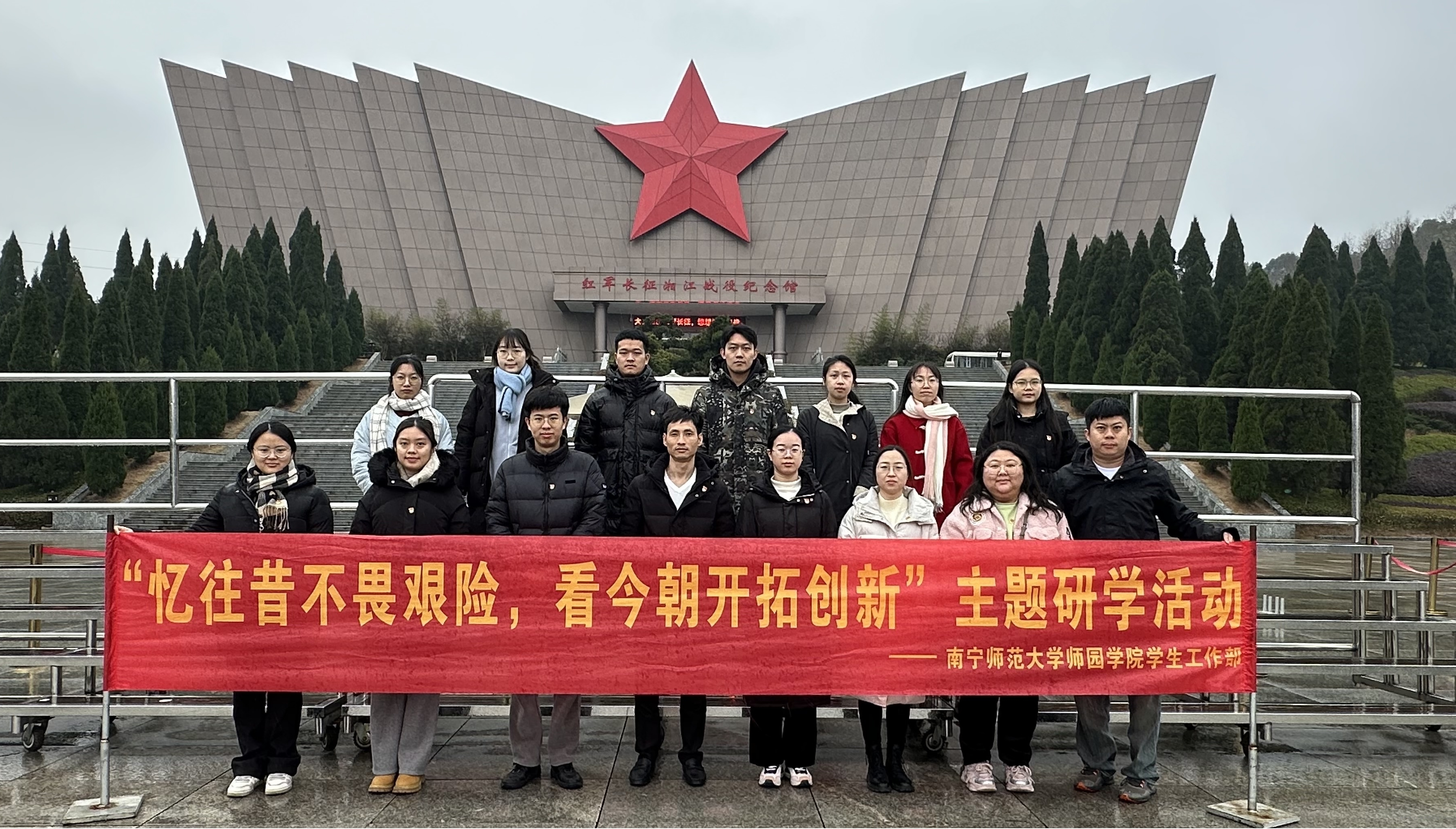 为深入学习宣传贯彻党的二十大和二十届三中全会精神,充分用好红色资源,教育引导青年学子在追寻红色足迹中感悟中国共产党人精神谱系,引导学生深刻领悟红色文化的内涵与价值,增强爱国主义情感,培养担当民族复兴大任的时代新人,近日,我院学生工作部部长叶栋、学院团委书记韦博文组织辅导员代表、资助工作人员、2024级新生代表以及受助学生代表前往红军长征湘江战役纪念馆等爱国主义教育基地,开展“传承红色基因,学思践悟中国共产党人精神谱系”暨“行红色足迹 筑青春梦想”红色基因体验行专题研学活动。