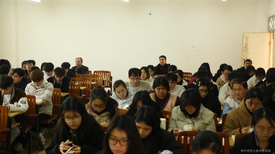 2月24日,正值我院2025年春季学期上课第一天,学院院长尹文嘉、党委副书记(主持党委工作)梁秋、副院长庞俊、副院长李德正、教学总督导卢敏秋等学院领导在教务处人员的陪同下走进思政课堂,与师生共上“开学第一课”,深入了解学院新学期教学工作开展情况,进一步夯实教学中心地位。