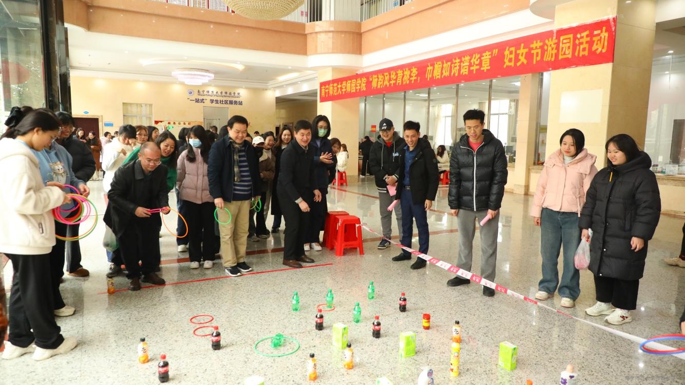 春之华章,巾帼展姿。为凝聚广大师生员工的智慧与力量,鼓舞女教职工及女学生发挥“半边天”的作用,3月7日下午,在第115个“三八”国际劳动妇女节来临之际,我院在行政综合楼1楼开展“师韵风华育桃李 巾帼如诗谱华章”游园活动。学院党委副书记梁秋(主持党委工作),党委副书记、常务副院长、工会主席李剑喜与师生齐聚一堂,共同参加游园活动,着力营造尊师重教、团结友爱的和谐氛围。
