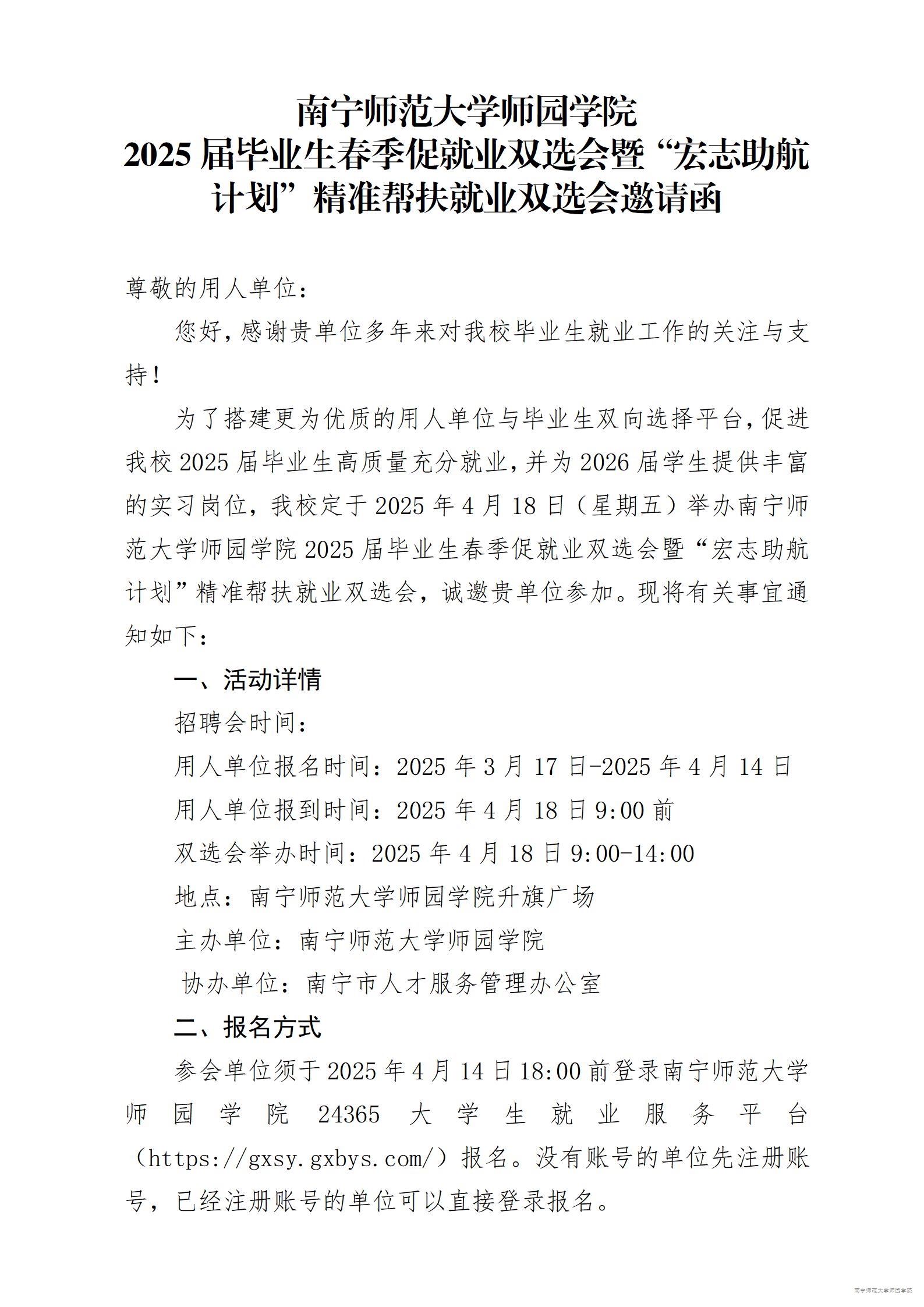 86体育直播2025届毕业生春季促就业双选会暨“宏志助航计划”精准帮扶就业双选会邀请函