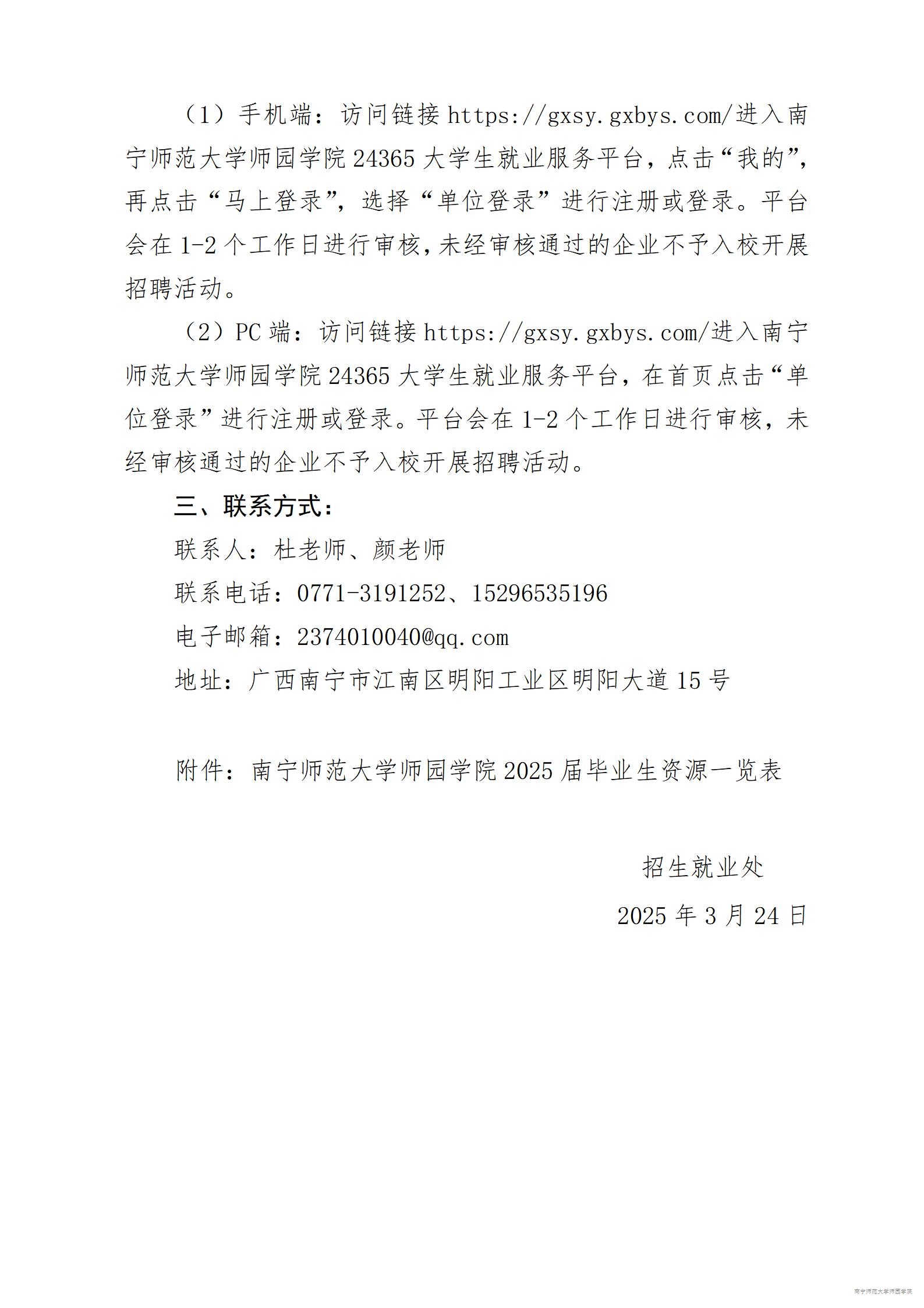 南宁市明阳工业区明阳大道15号 邮编:530226 就业办公室电话:0771-3191252
