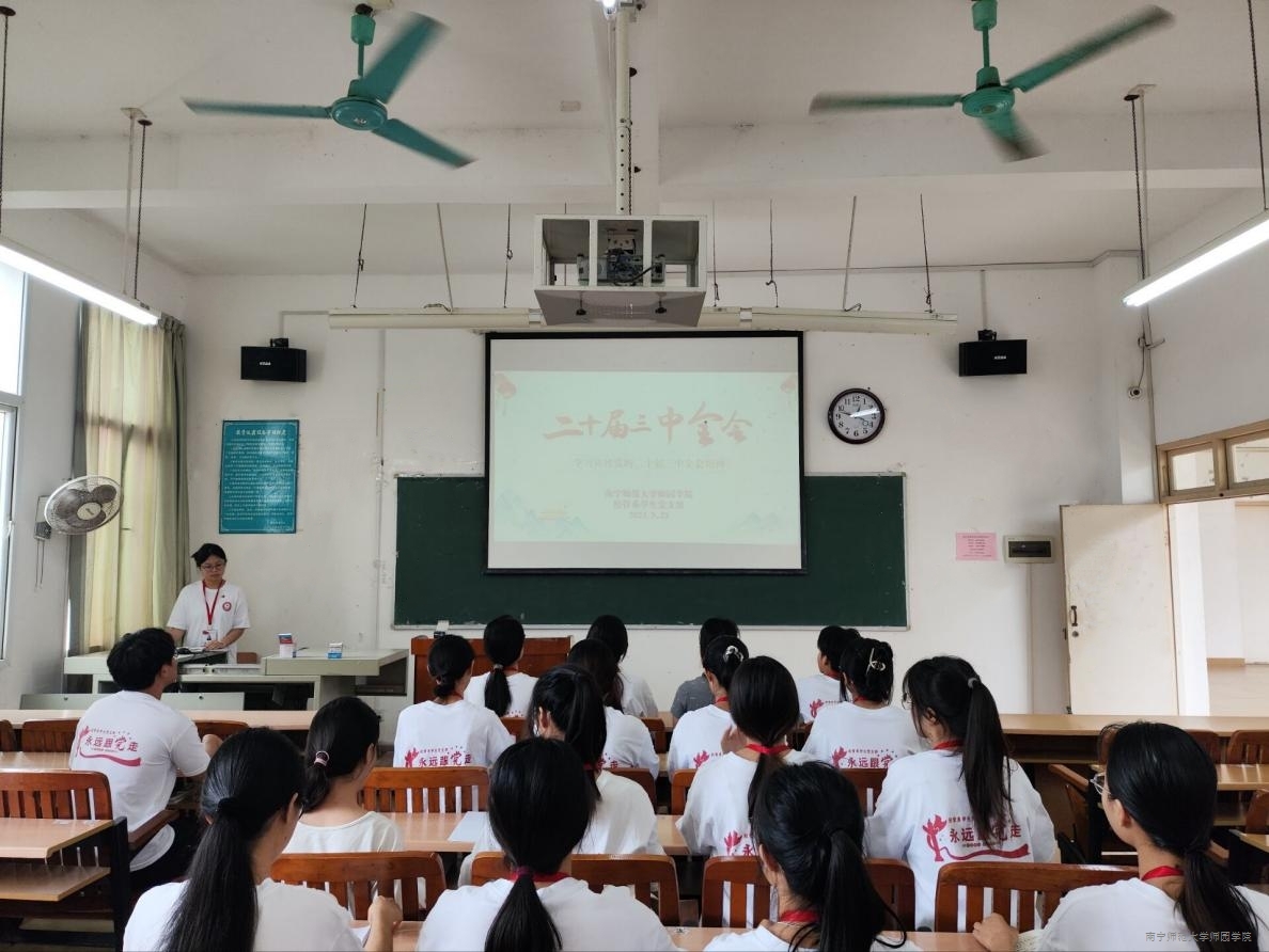 为深入学习贯彻党的二十届三中全会精神,9月25日中午,经管系学生党支部在教学楼4栋204教室召开党的二十届三中全会精神专题学习会。经管系学生党支部书记林嘉欣老师、在校学生党员、党建助理参加专题学习。