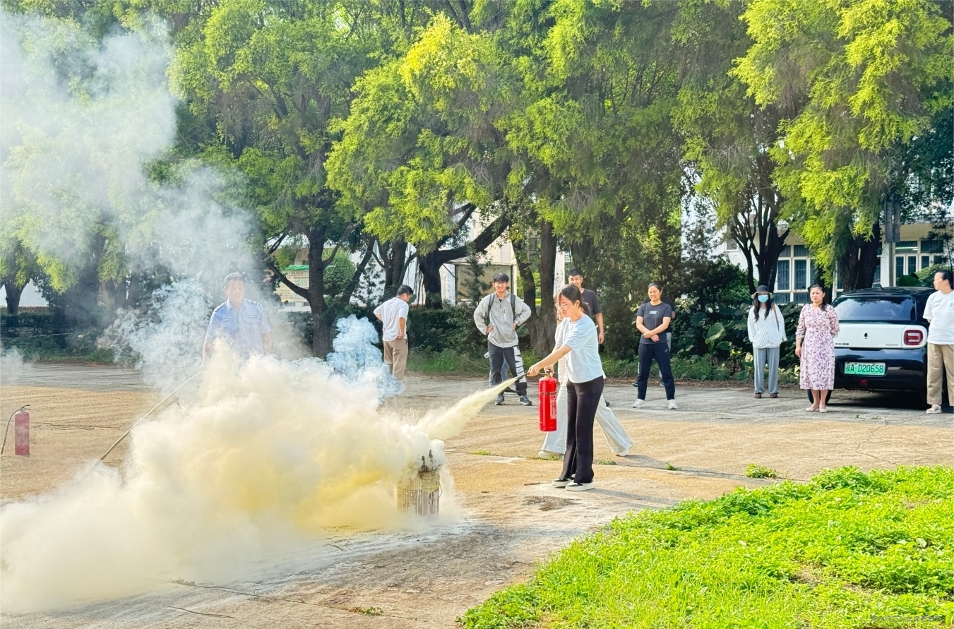 讲座上,覃教官以校园安全和教职工生活实际为切入点,通过许多真实的火灾案例和火灾警示视频,全面讲解火灾产生的根源、其带来的巨大危害以及有效的预防手段。讲座上展示的一张张惨烈的火灾人员伤亡图片和视频,让在场的教职工直观感受到火灾的凶险,深刻体会到消防安全的重要性。此外,覃教官还详细介绍了灭火器、消火栓等消防设施的规范操作流程,并分享了火灾突发时的正确自救互救措施等实用知识,并为现场的教职工解答消防安全问题。最后覃教官带领着学院教职工成员来到室外进行了一场应急演练,提升了学院教职工应对火灾的实际能力。