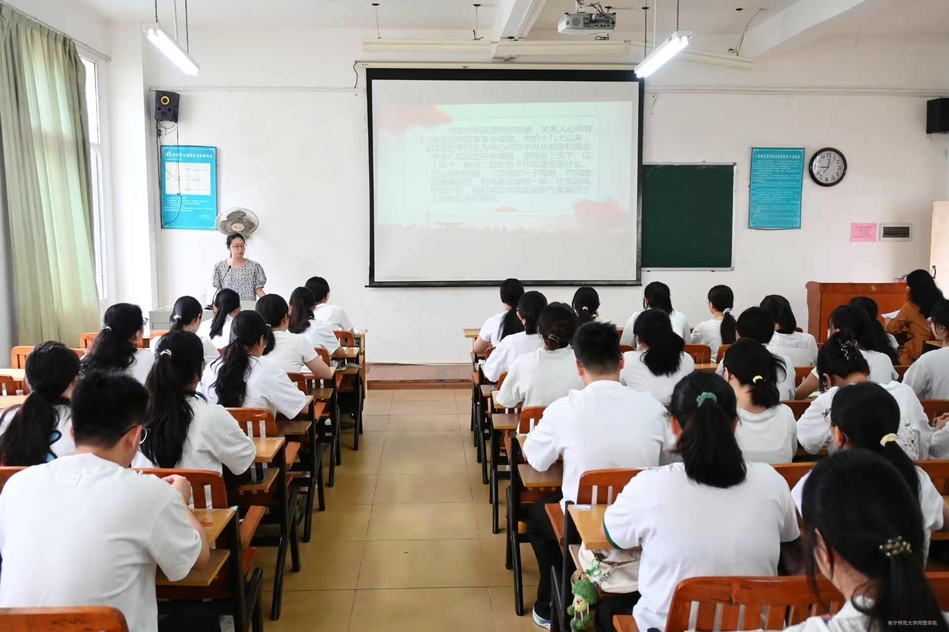 为学习习近平总书记关于深入贯彻中央八项规定精神学习教育的重要讲话和重要指示精神,4月25日上午,中文系学生党支部在教学楼3-302教室开展“清廉守正担使命,砥砺奋进铸忠诚”主题深入贯彻中央八项规定精神学习教育专题党课,本次党课由学生党支部书记龚今惠主讲,中文系党总支书记潘美益、全体学生党员参加党课学习。