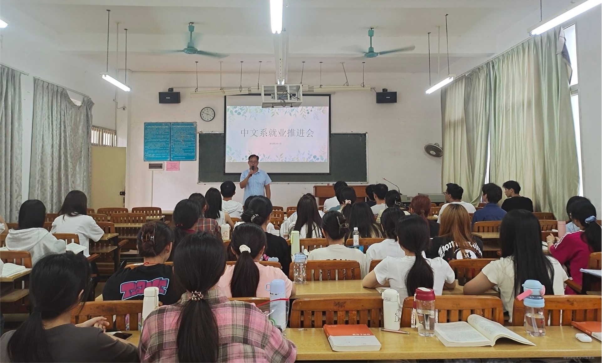 为深入贯彻落实学院关于毕业生就业工作的决策部署,进一步推进2025届毕业生高质量就业,中文系于5月27日下午在教学楼3-307教室召开2025届毕业生就业工作推进会。中文系主任骆柳毅主持会议并讲话,中文系毕业班辅导员及2025届毕业生代表参加会议。