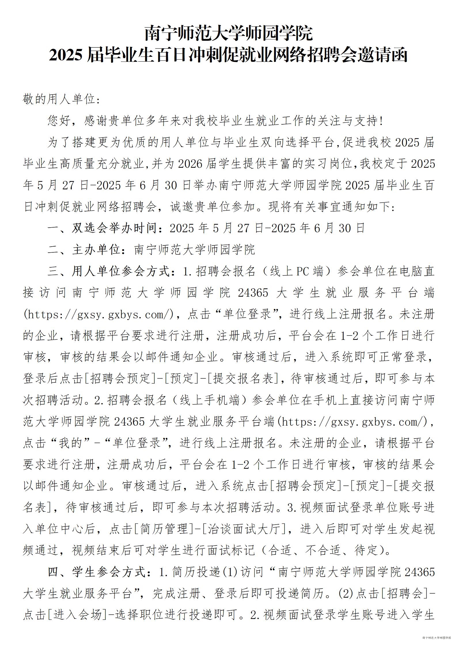 86体育直播2025届毕业生百日冲刺就业网络招聘会邀请函