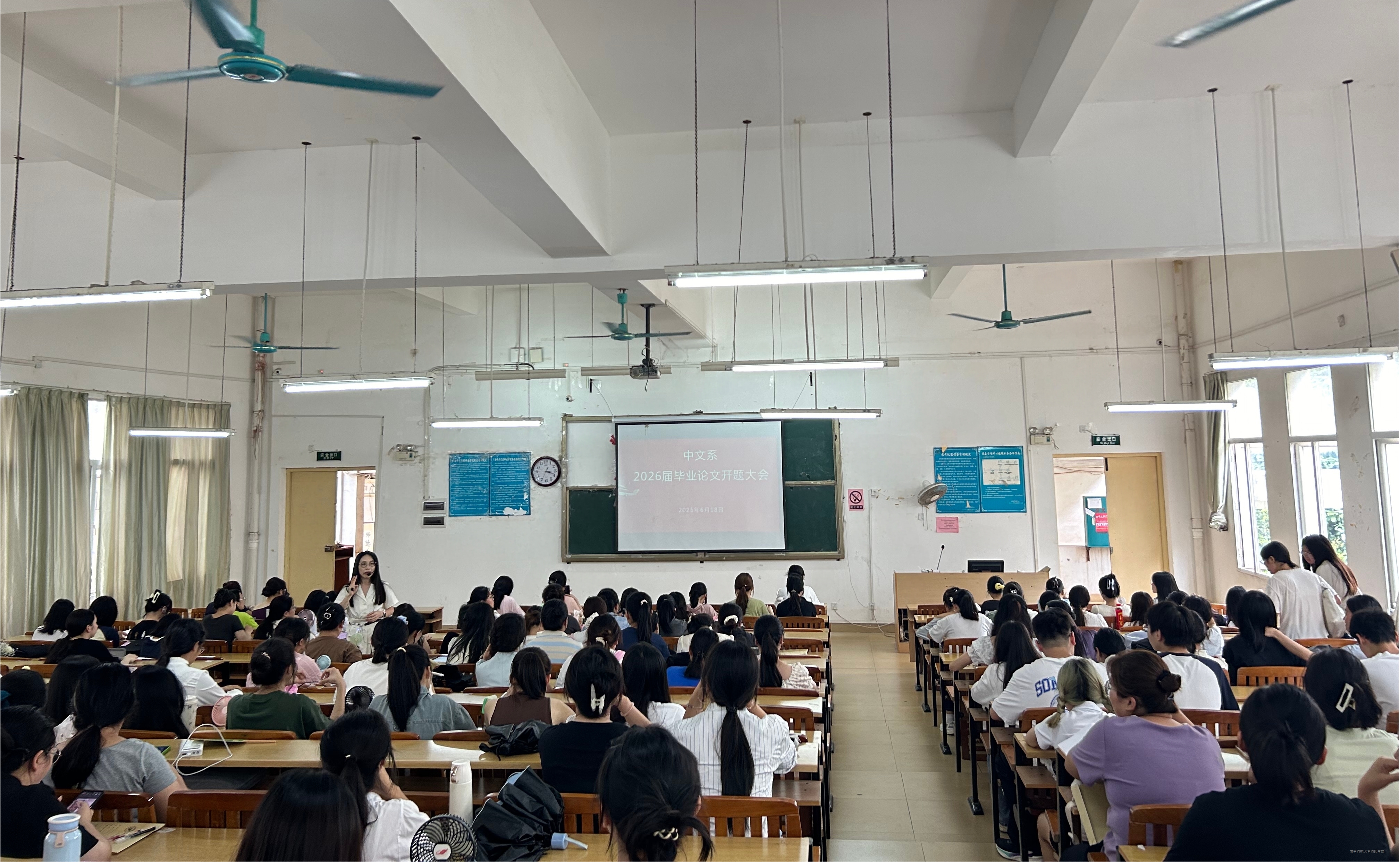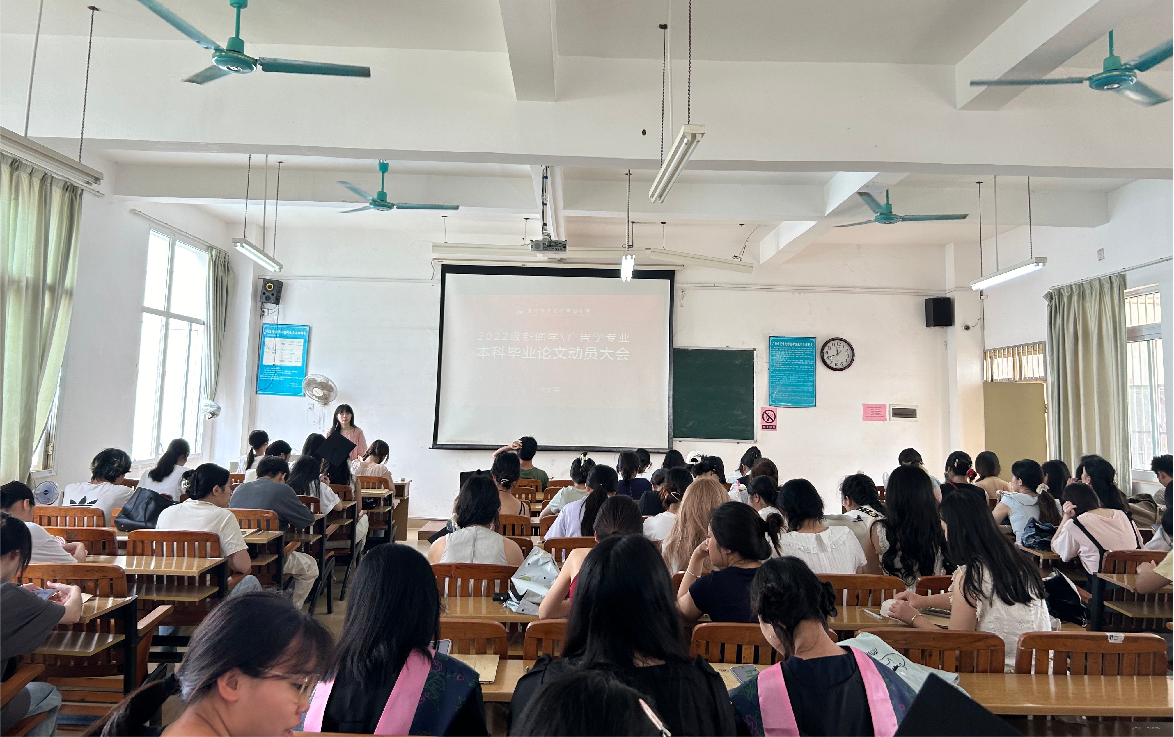 为全面推进2022级学生的毕业论文写作与实习工作,强化学术规范意识,提升实践能力。6月18日,中文系顺利召开2022级学生毕业论文写作指导大会暨实习动员大会。新闻广告教研室主任胡安迪、汉语言文学教研室副主任黄曼婷,毕业班辅导员以及2022级全体学生参会。
