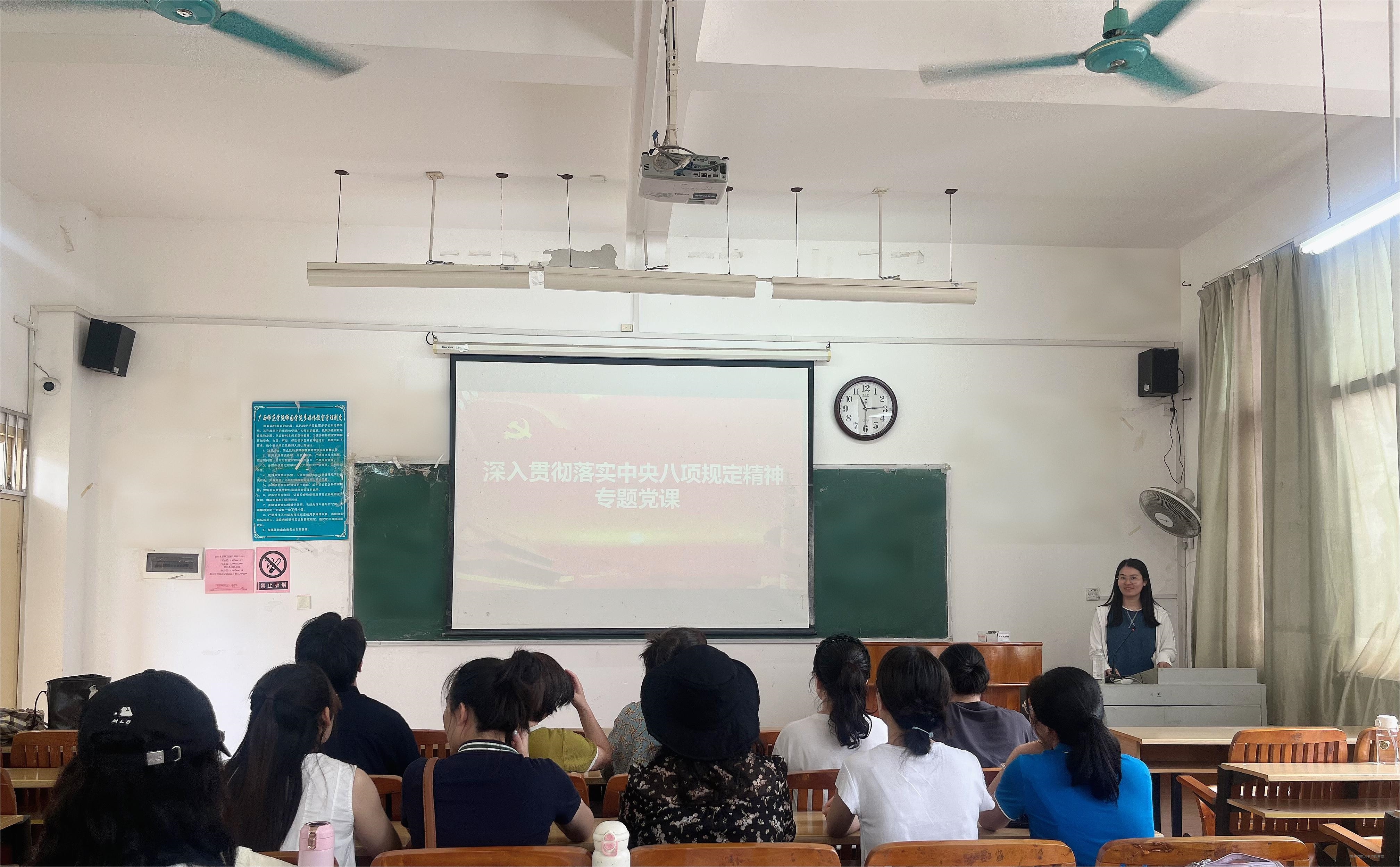 为加强党风廉政建设,提升党员干部的政治素养和纪律意识,6月23日中午,外语系教工党支部在教学楼3-207教室开展深入贯彻中央八项规定精神学习教育专题党课。本次会议由外语系教工党支部书记黄小云主讲,外语系全体党员教师参加党课学习。