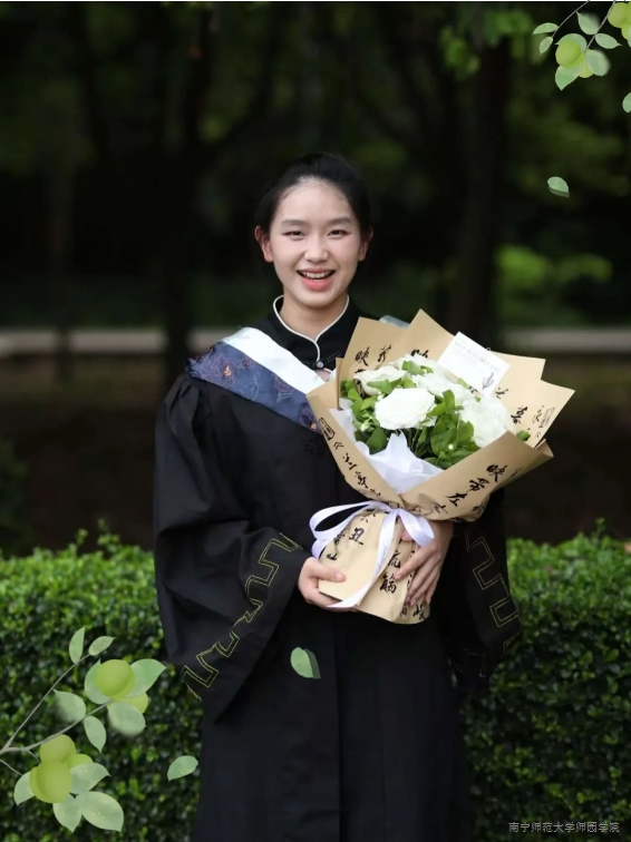 她研学致用,业精于勤。她深耕专业,学业表现卓著,连续两年荣膺广西壮族自治区人民政府奖学金,并三度获评校级“三好学生”。她恪尽担当,服务热忱,拥有丰富多元的学生工作经历,在每一个岗位都倾力奉献,四度荣获校级“优秀学生干部”,两度荣获“优秀团员”,展现了出色的组织协调能力与服务意识。