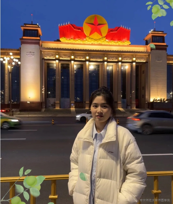 她学悟并举,砥砺前行。学业与综合素质双优,两年斩获国家励志奖学金,并荣膺2023年广西壮族自治区人民政府奖学金;在校级荣誉中,连续三年蝉联“三好学生”与“优秀学生干部”,彰显卓越学习能力与领导力。